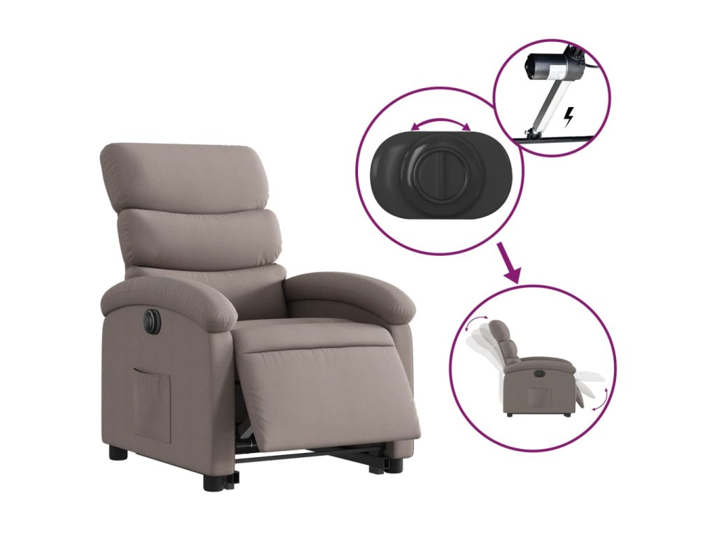 - Funkce elektrického sklápění: Toto polohovací křeslo je také vybaveno elektromotorem. Jednoduchým stisknutím tlačítka na boku křesla můžete automaticky nastavit opěrku nohou a opěradlo do libovolné polohy tak, abyste se cítili pohodlně. Tato funkce umožňuje maximální náklon 135 stupňů. Opěradlo se navíc může jednoduchým stisknutím tlačítka automaticky vrátit do původní polohy.