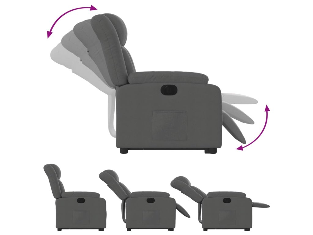 - Funkce elektrického sklápění: Toto polohovací křeslo je také vybaveno elektromotorem. Jednoduchým stisknutím tlačítka na boku křesla můžete automaticky nastavit opěrku nohou a opěradlo do libovolné polohy tak, abyste se cítili pohodlně. Tato funkce umožňuje maximální náklon 135 stupňů. Opěradlo se navíc může jednoduchým stisknutím tlačítka automaticky vrátit do původní polohy.