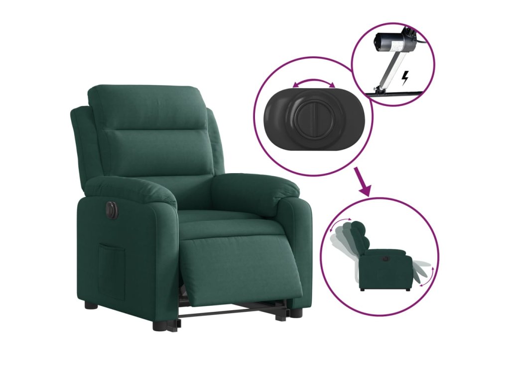 - Funkce elektrického sklápění: Toto polohovací křeslo je také vybaveno elektromotorem. Jednoduchým stisknutím tlačítka na boku křesla můžete automaticky nastavit opěrku nohou a opěradlo do libovolné polohy tak, abyste se cítili pohodlně. Tato funkce umožňuje maximální náklon 135 stupňů. Opěradlo se navíc může jednoduchým stisknutím tlačítka automaticky vrátit do původní polohy.