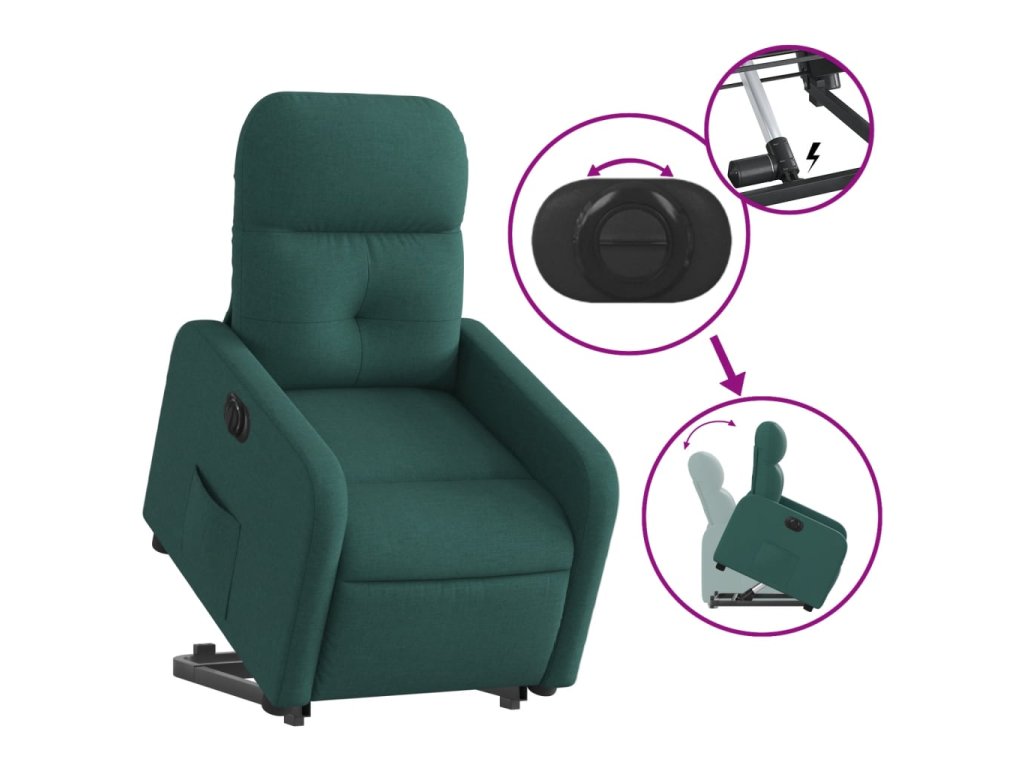 - Funkce sklápění: Toto polohovací křeslo pro seniory je vybaveno elektromotorem pro jeho zvedání. Vzhledem k funkci zvedání, která tlačí celé křeslo nahoru, můžete snadno vstát, aniž byste zatěžovali záda a kolena.