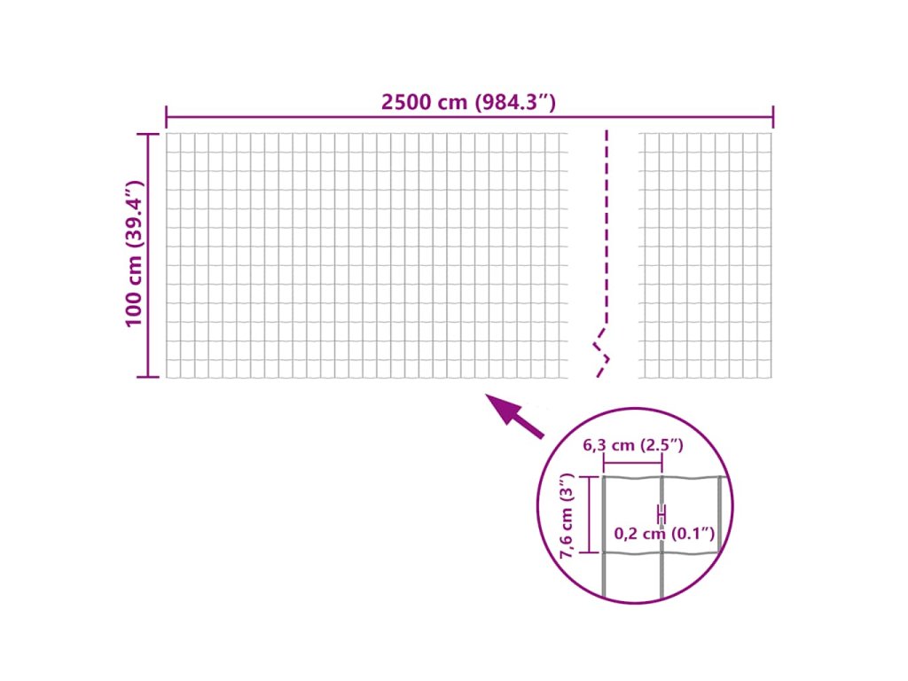 - Průměr drátu: 1,8/2,2 mm (1,8 mm ocelový drát, 2,2 mm včetně PVC potahu)