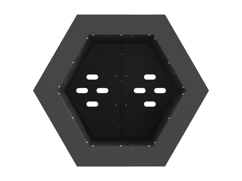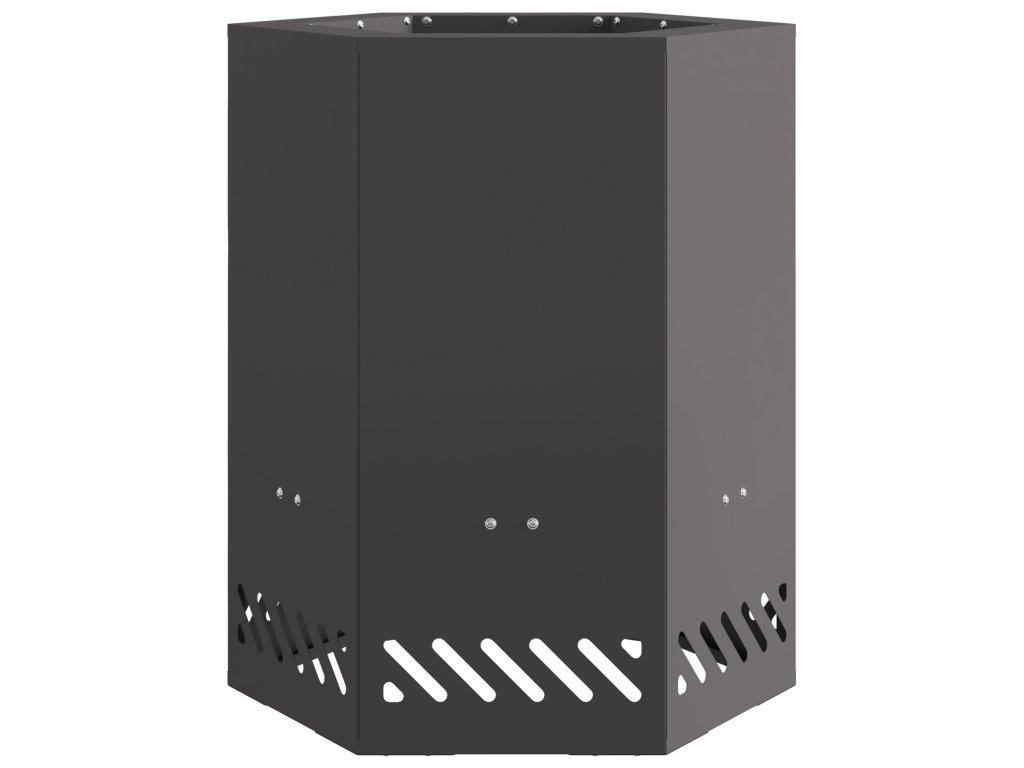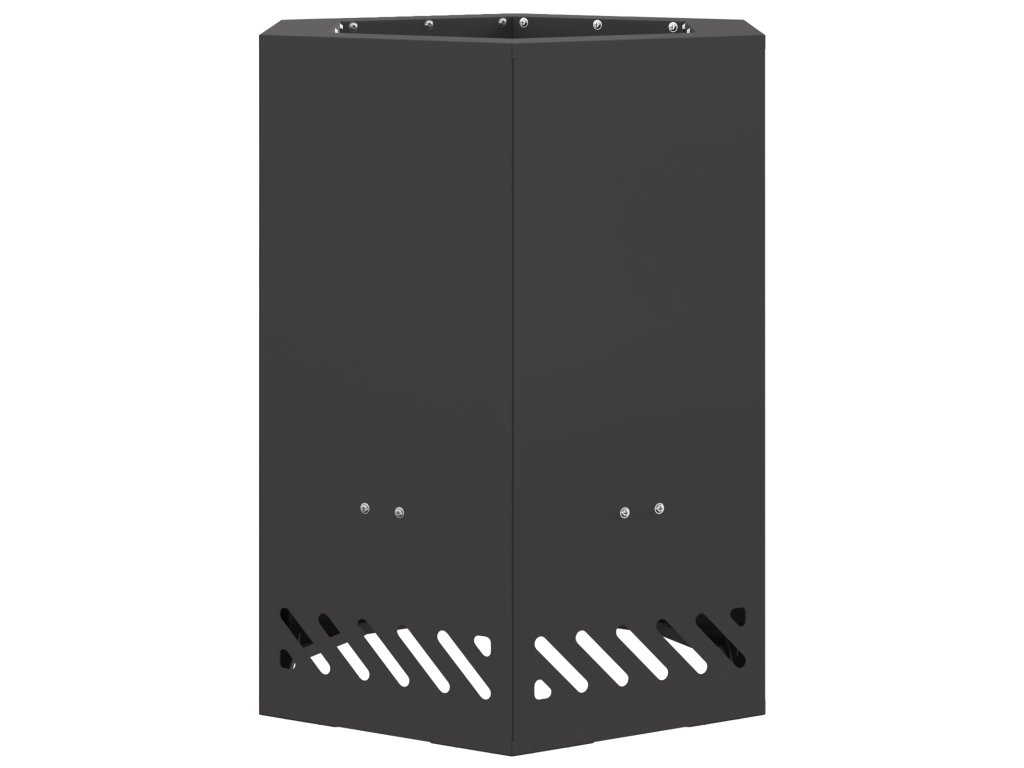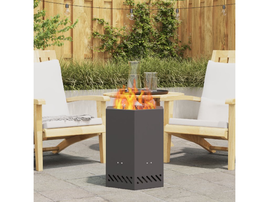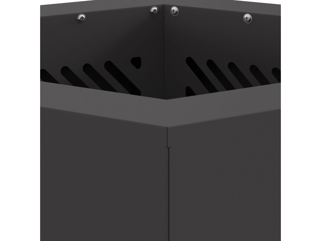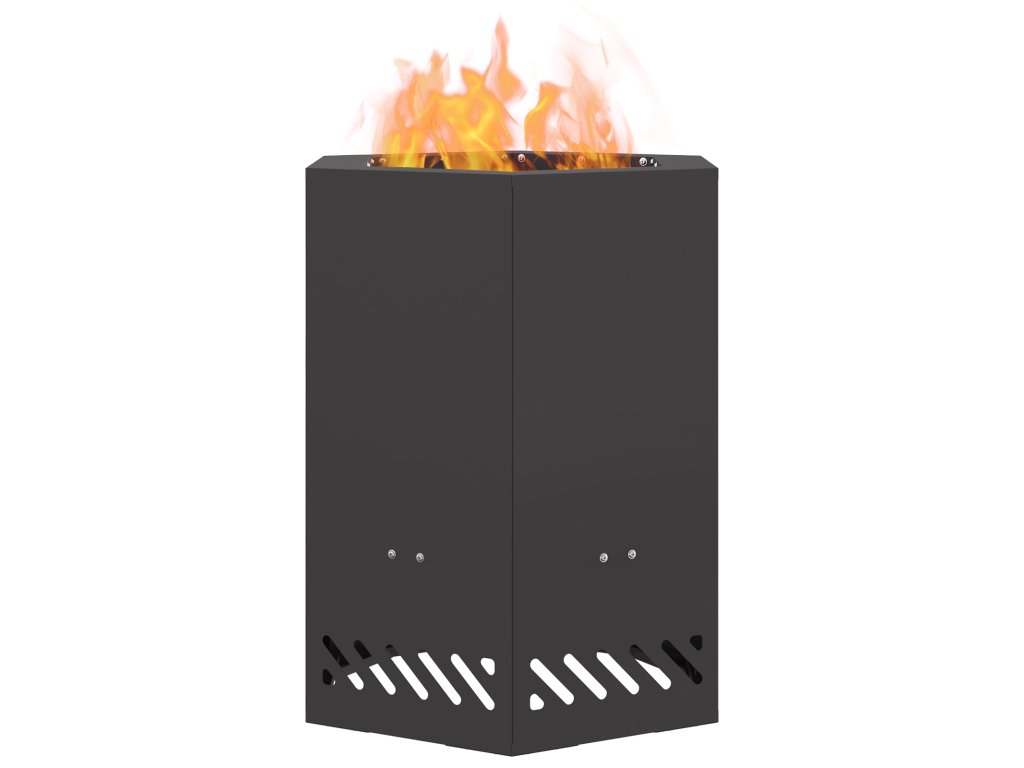 - Moderní styl: Šestiúhelníkový tvar a matný černý povrch dodávají tomuto ohništi trendy nádech, který se hodí do různých venkovních stylů.
