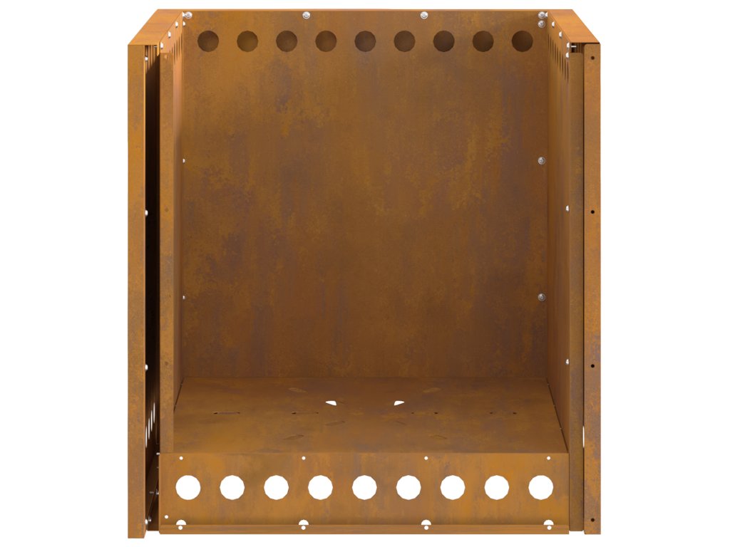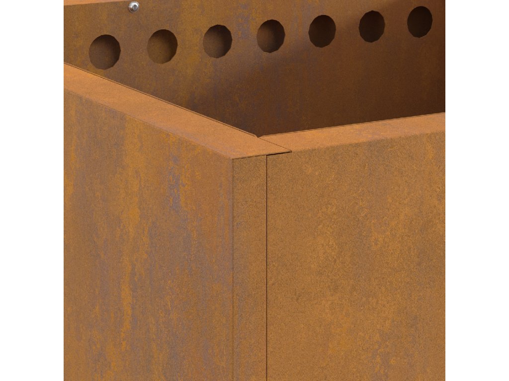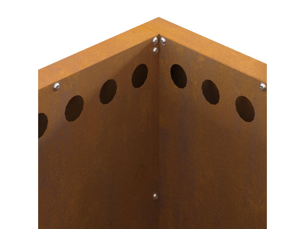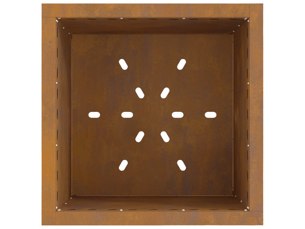 Toto rustikální ohniště z weathering oceli přetváří váš venkovní prostor na pohodlný útulný kout, skvélé pro setkání a večerní relaxaci. Jeho velký čtvercový tvar a jedinečná zvětralá úprava dělají z něj skvělý prvek pro terasy a zahrady, spojující praktičnost s kouzlem.