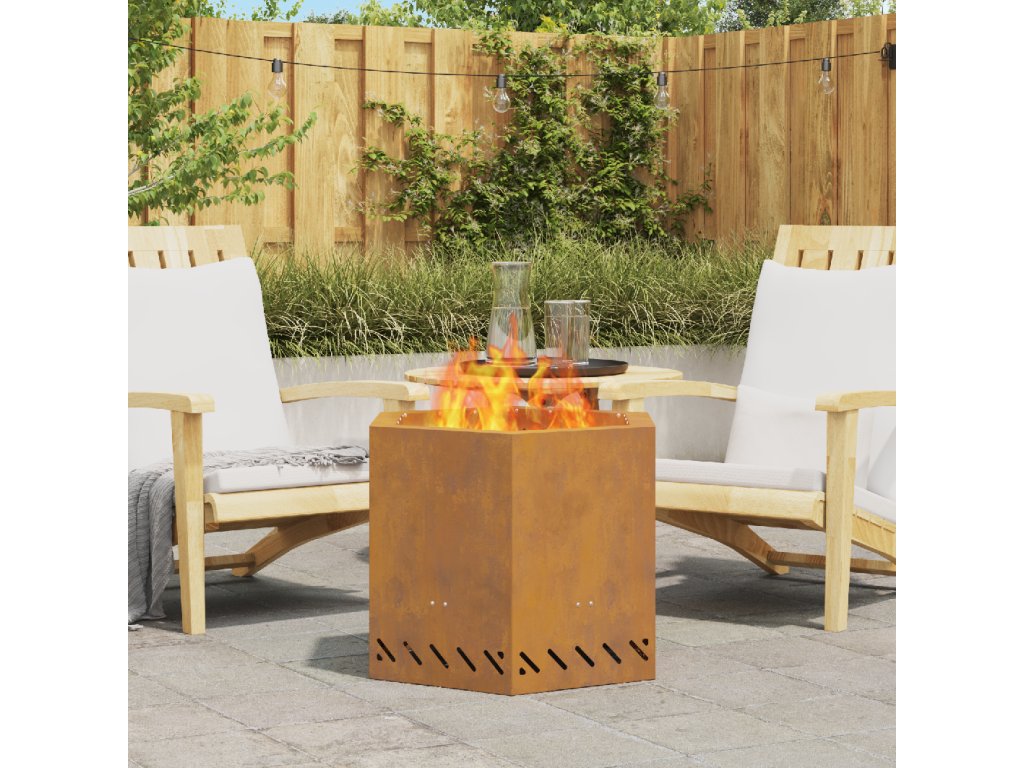 Toto rustikální šestiúhelníkové ohniště dodává teplo a příjemnou atmosféru vašim venkovním akcím. Skvělé pro večery s rodinou a přáteli. S hezkým rustikálním vzhledem a pevnou konstrukcí, co vypadá dobře a dobře snáší špatné počasí, tohle ohniště se hodí na terasy a balkony.