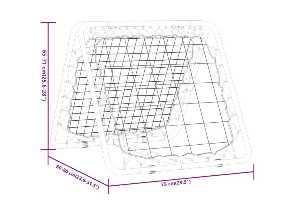 - Nastavitelný úhel: Rebounder umožňuje nastavit úhel tak, aby vyhovoval různým tréninkovým požadavkům. Obsahuje navíc stabilizační kotvy, které zabraňují převrácení při používání.