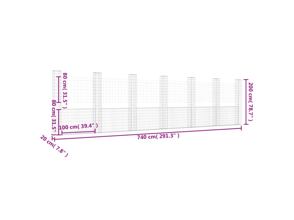 Gabion se sloupky, vyrobený z nerezavějícího železa odolného vůči povětrnostním vlivům, je velmi stabilní a odolný. Síťová mřížka je tvořena vodorovnými a svislými dráty, které jsou ve všech spojích svařené. Díky drátu o průměru 3,5 mm je gabion velmi robustní. Gabionová stěna je určená k vyplnění kameny nebo kamennou drtí pro rychlou výstavbu. Tento gabion je ideální pro zahradní projekty a ve vašem venkovním obytném prostoru nepochybně upoutá pozornost.