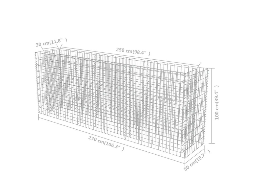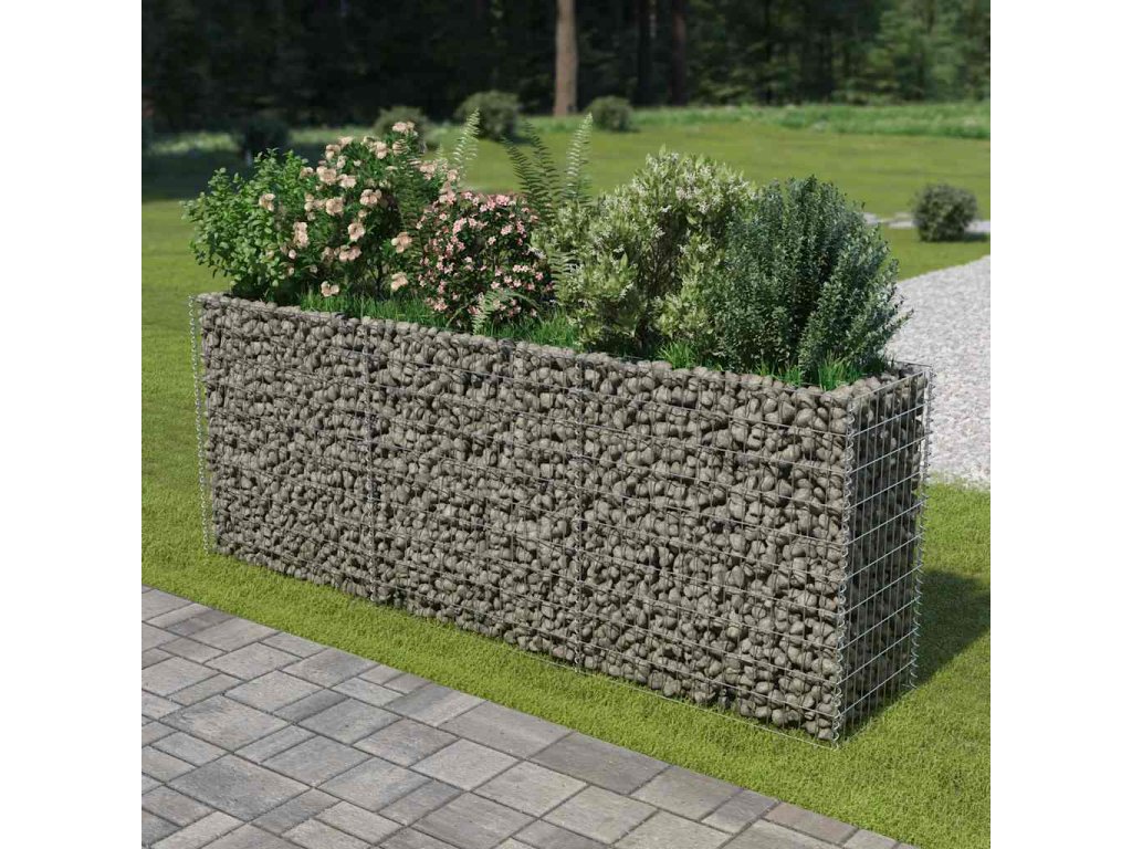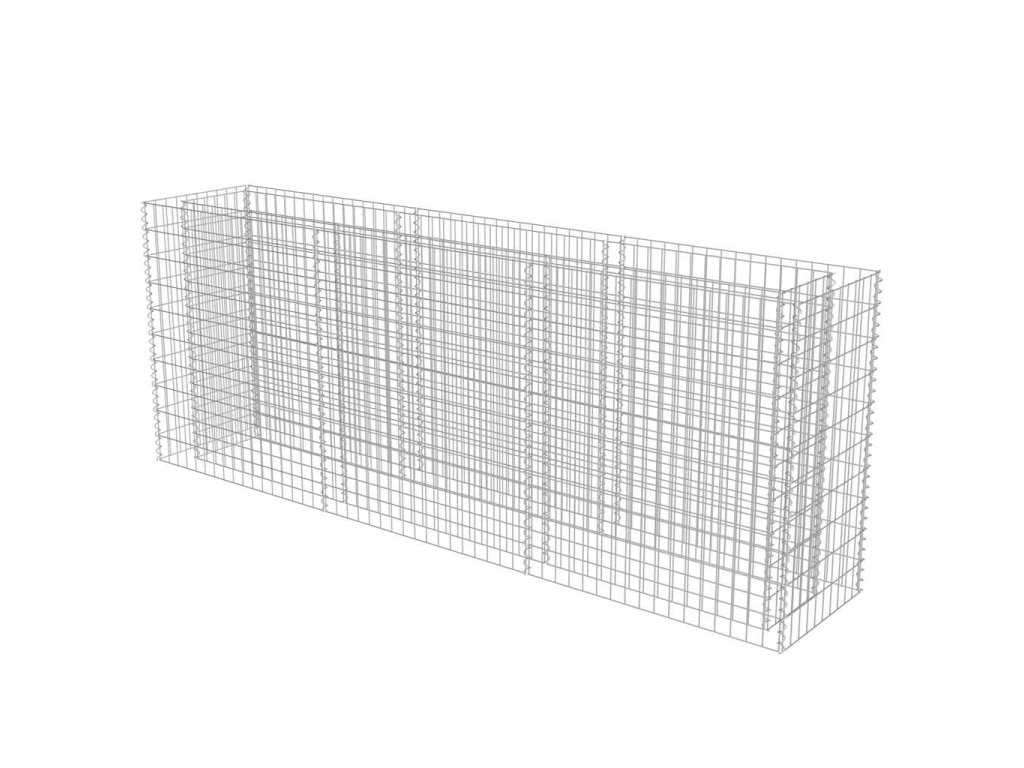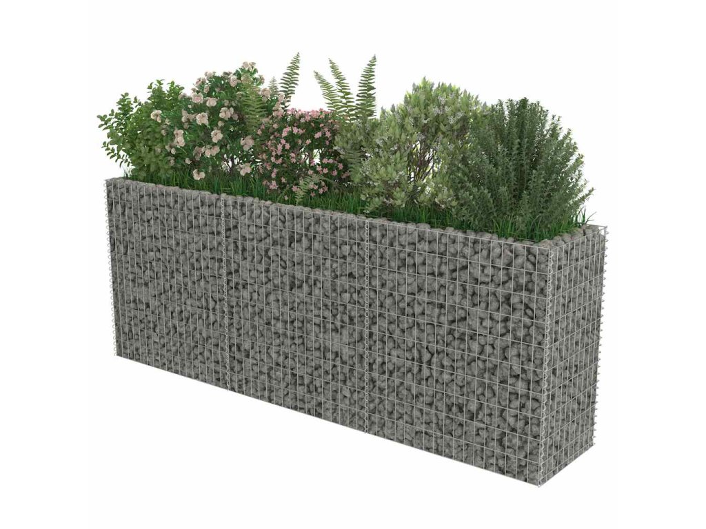Robustní gabion je určen k tomu, aby byl naplněn kameny nebo štěrkem. Je vyrobený z nerezavějící pozinkované oceli, která nepodléhá povětrnostním vlivům, takže vysoký záhon je velmi stabilní a odolný. Síťová mřížka je tvořená svislými a vodorovnými dráty, které jsou ve všech spojích svařené, aby se tak zajistila mimořádná pevnost.