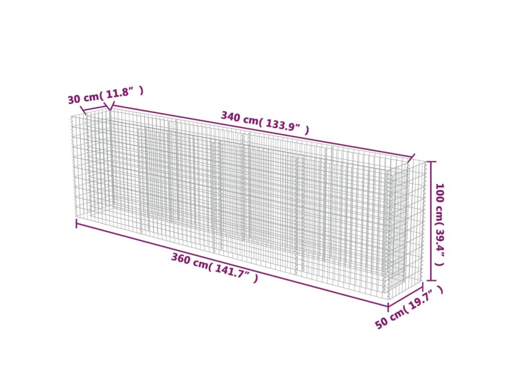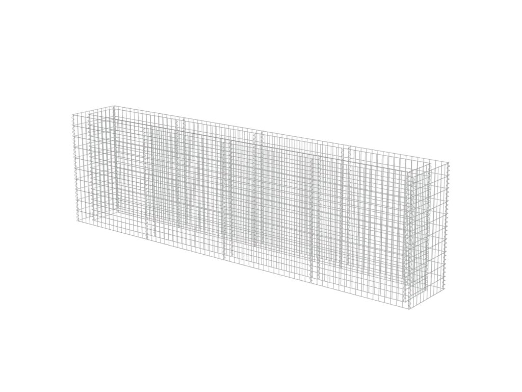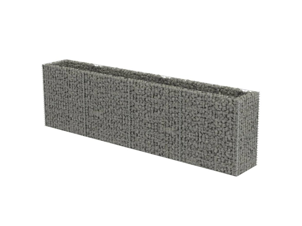 Robustní gabion je určen k tomu, aby byl naplněn kameny nebo štěrkem. Je vyrobený z nerezavějící pozinkované oceli, která nepodléhá povětrnostním vlivům, takže vysoký záhon je velmi stabilní a odolný. Síťová mřížka je tvořená svislými a vodorovnými dráty, které jsou ve všech spojích svařené, aby se tak zajistila mimořádná pevnost.