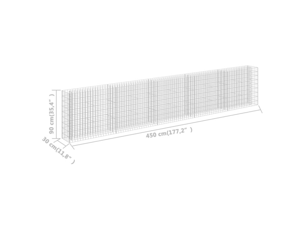 Robustní gabion je designovaný tak, aby ho bylo možné naplnit kameny nebo štěrkem. Gabion je vyrobený z nerezavějící pozinkované oceli, která nepodléhá povětrnostním vlivům, a proto je velmi stabilní a odolný. Síťová mřížka je tvořená svislými a vodorovnými dráty, které jsou ve všech spojích svařené, aby se tak zajistila mimořádná pevnost.