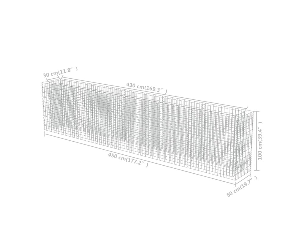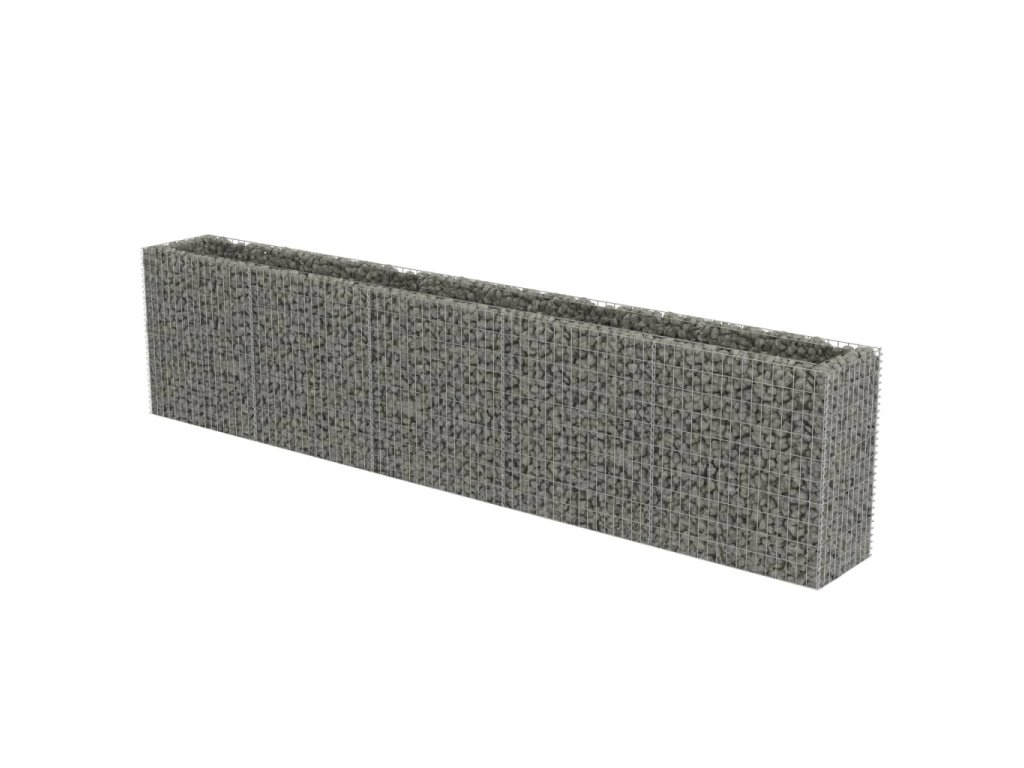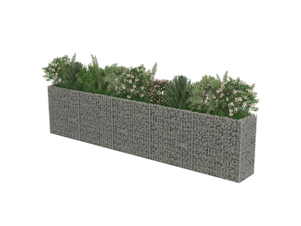 Robustní gabion je určen k tomu, aby byl naplněn kameny nebo štěrkem. Je vyrobený z nerezavějící pozinkované oceli, která nepodléhá povětrnostním vlivům, takže vysoký záhon je velmi stabilní a odolný. Síťová mřížka je tvořená svislými a vodorovnými dráty, které jsou ve všech spojích svařené, aby se tak zajistila mimořádná pevnost.