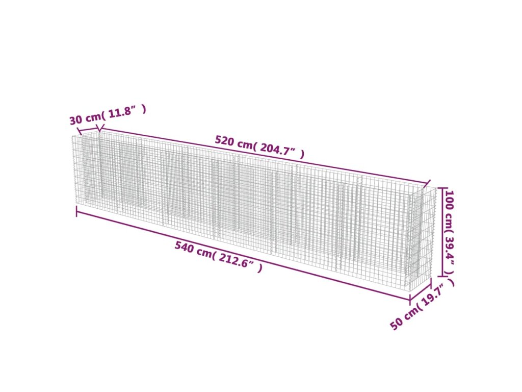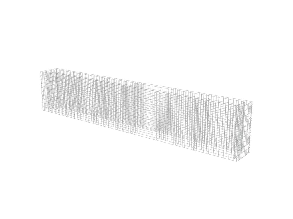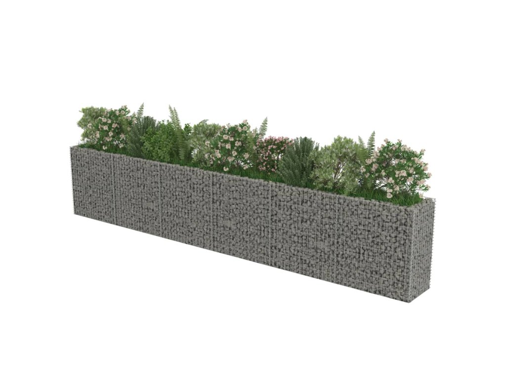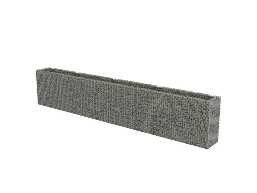 Robustní gabion je určen k tomu, aby byl naplněn kameny nebo štěrkem. Je vyrobený z nerezavějící pozinkované oceli, která nepodléhá povětrnostním vlivům, takže vysoký záhon je velmi stabilní a odolný. Síťová mřížka je tvořená svislými a vodorovnými dráty, které jsou ve všech spojích svařené, aby se tak zajistila mimořádná pevnost.