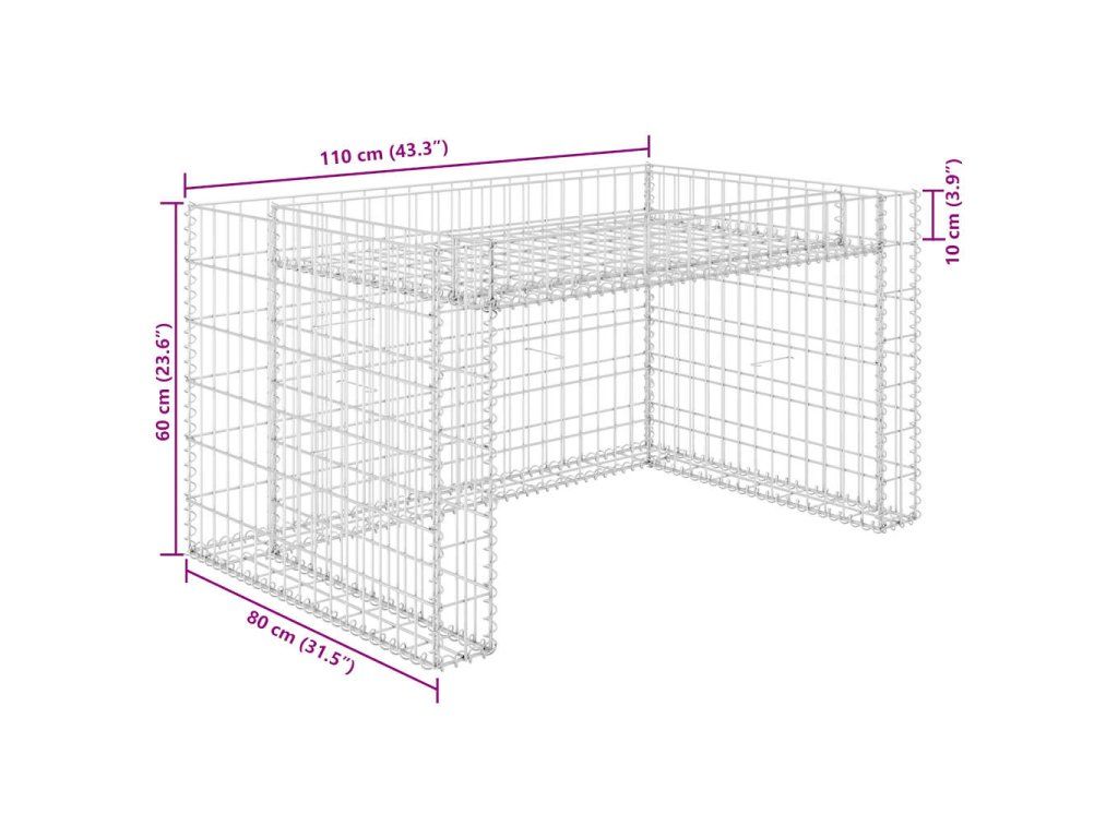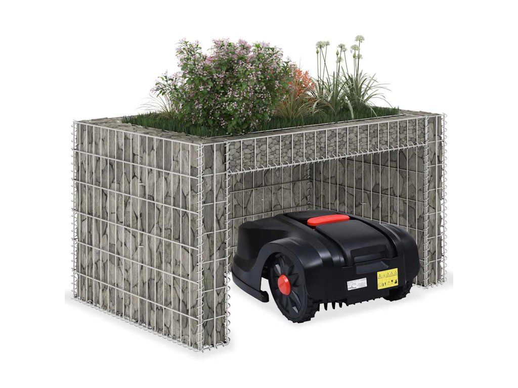 Robustní gabion je designovaný tak, aby ho bylo možné naplnit kameny nebo štěrkem. Gabion je vyrobený z nerezavějící oceli, která nepodléhá povětrnostním vlivům, a proto je velmi stabilní a odolný. Mřížka je tvořená svislými a vodorovnými dráty, které jsou ve všech spojích svařené, aby se tak zajistila mimořádná pevnost a stabilita garáže na sekačku. Střešní část je možné použít jako truhlík pro vaše květiny.
