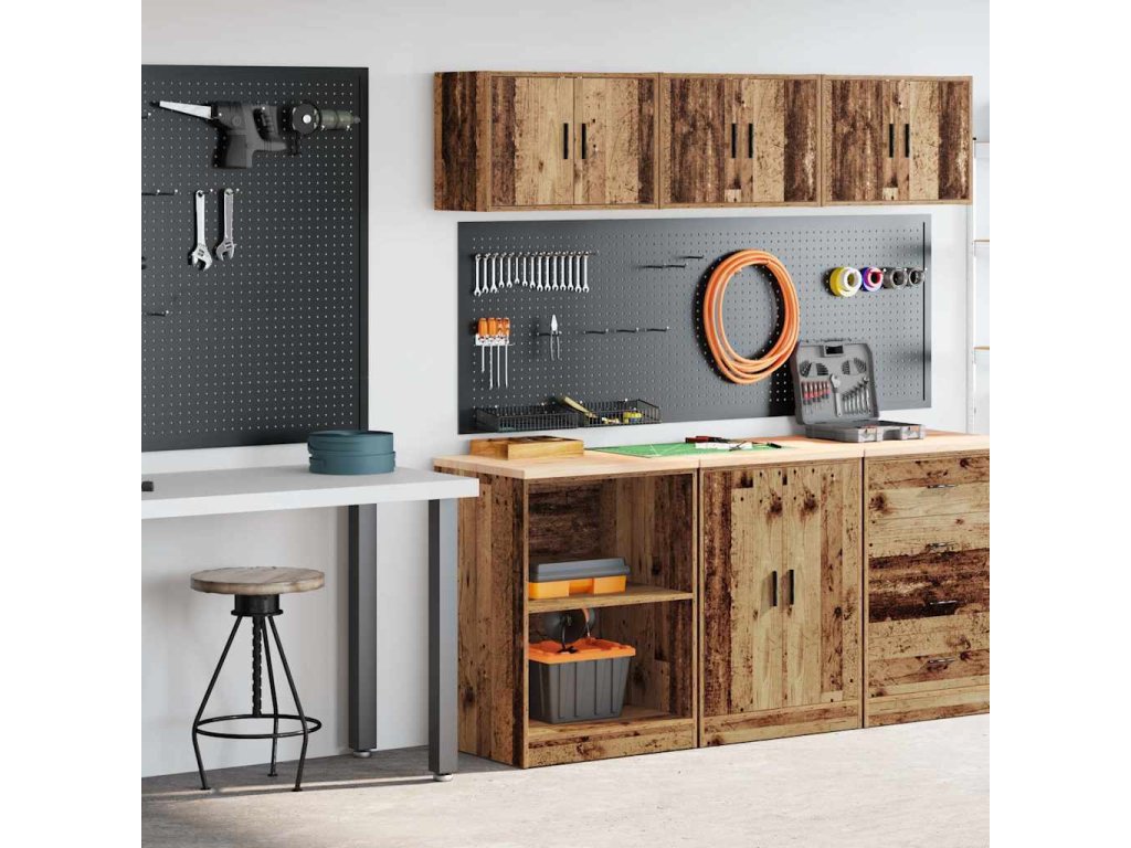 - Odolnost a dlouhá životnost: Tato garážová skříň je vyrobena z odolného borovicového dřeva a umělého dřeva, což zajišťuje stabilitu a pevnost pro dlouhodobé používání.