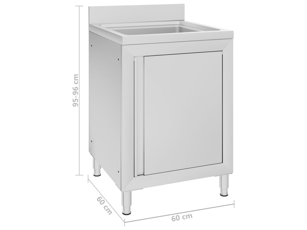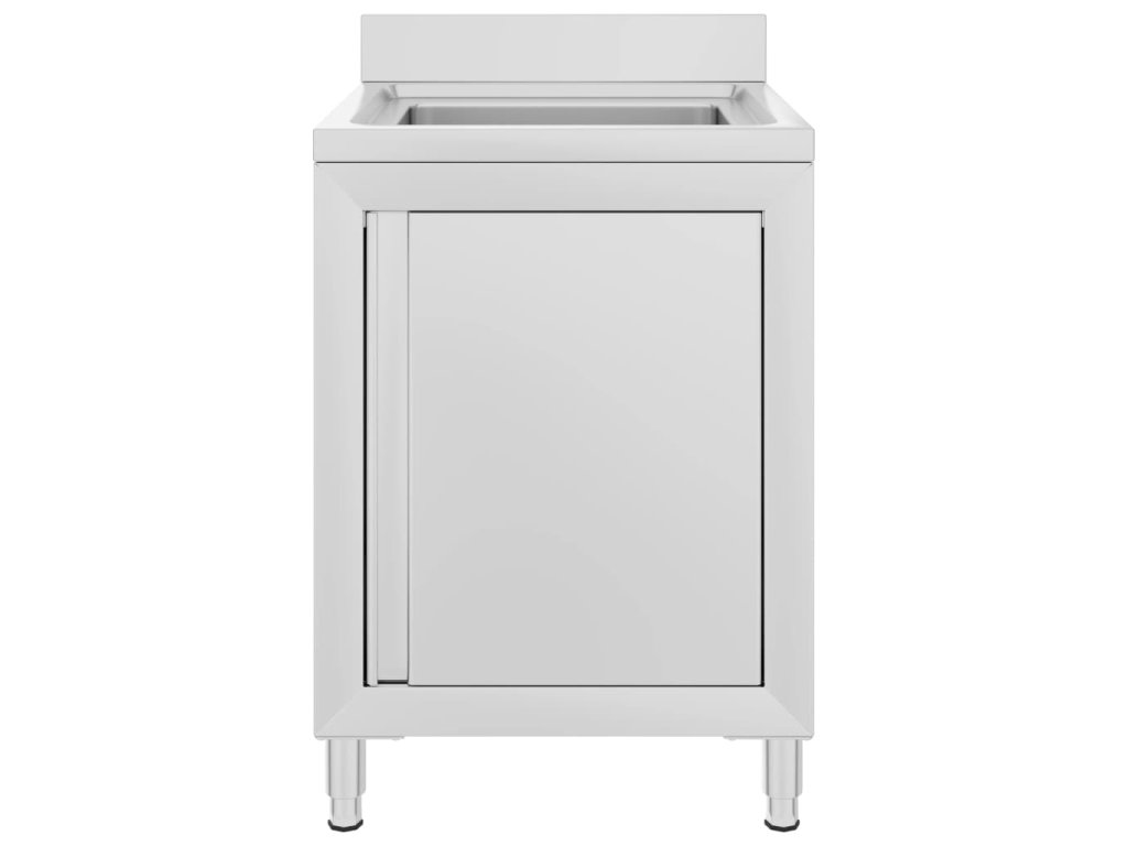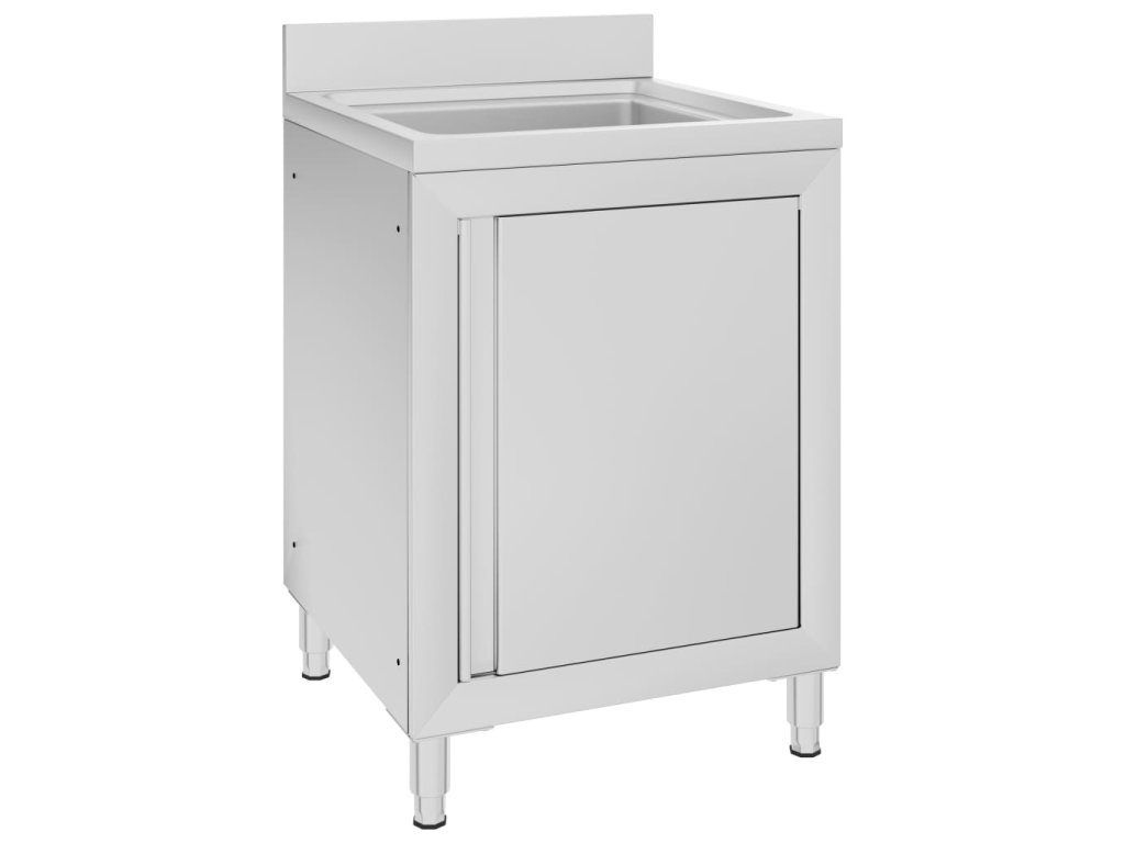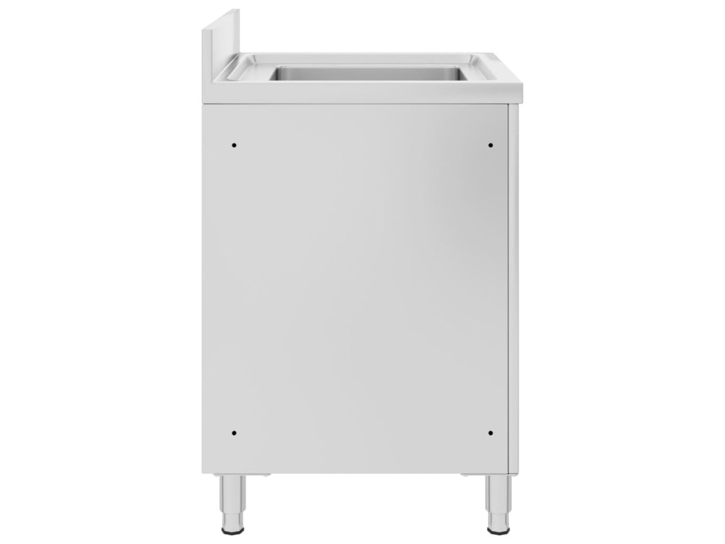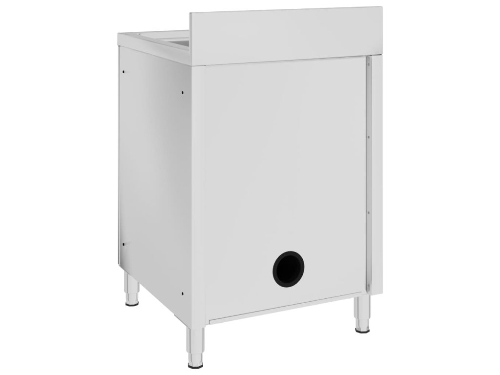 Tato skříňka je vyrobená z kvalitní nerezové oceli a je robustní, antikorozní a snadno se čistí. Spodní skříňka poskytuje dostatek úložného prostoru pro úklidové vybavení a příslušenství. Nastavitelné nožičky umožňují vyrovnat skříňku i na vodorovné ploše. Součástí skříňky je 10 cm vysoký zadní lem a otvor na vodní trubku.