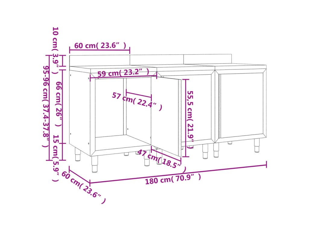 - Celkové rozměry: 180 x 60 x (95–96) cm (D x Š x V)