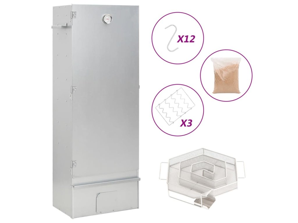 - Dostatek prostoru na uzení: Venkovní udírna poskytuje dostatek prostoru pro uzení masa, ryb, klobás apod. Pomocí přiložených háků ve tvaru písmene S a roštů bude grilování pohodlnější.
