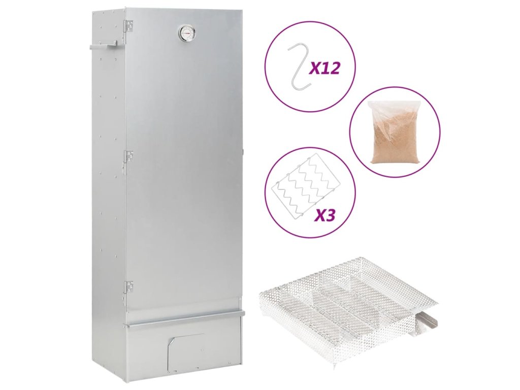 - Dostatek prostoru na uzení: Venkovní udírna poskytuje dostatek prostoru pro uzení masa, ryb, klobás apod. Pomocí přiložených háků ve tvaru písmene S a roštů bude grilování pohodlnější.