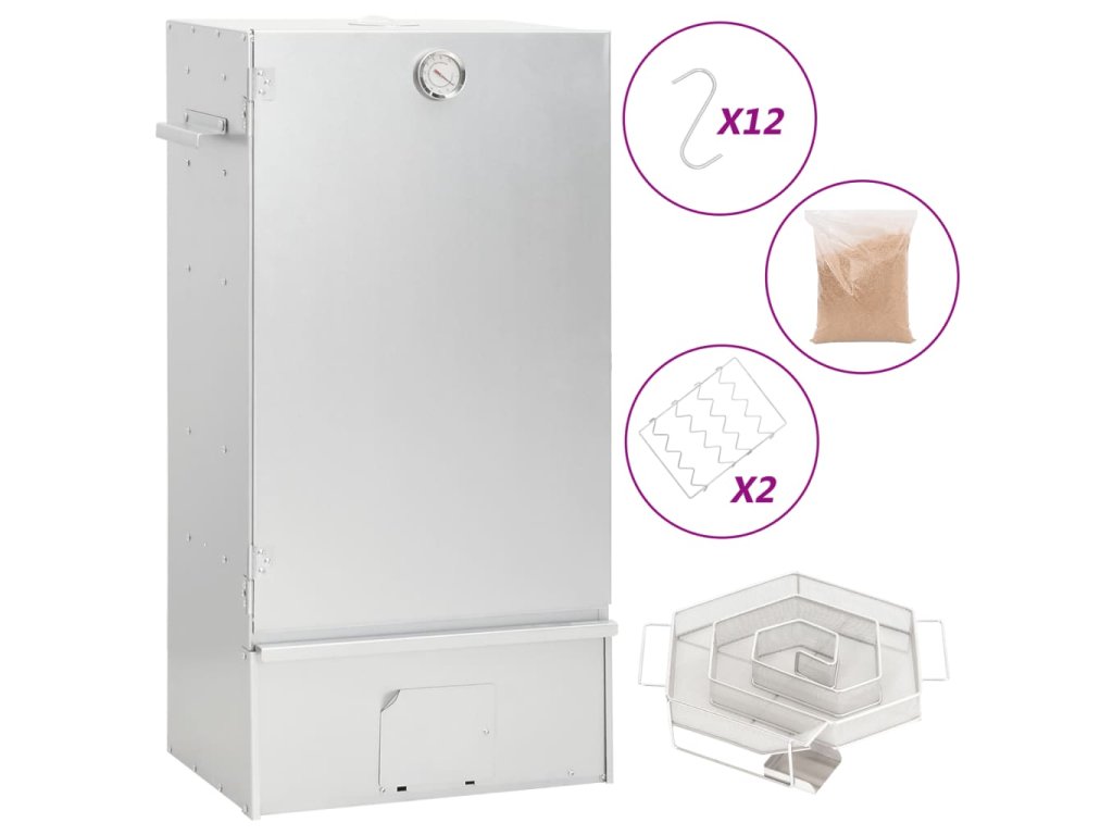 - Dostatek prostoru na uzení: Venkovní udírna poskytuje dostatek prostoru pro uzení masa, ryb, klobás apod. Pomocí přiložených háků ve tvaru písmene S a roštů bude grilování pohodlnější.