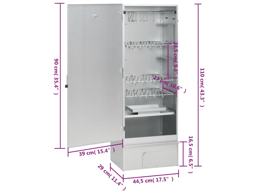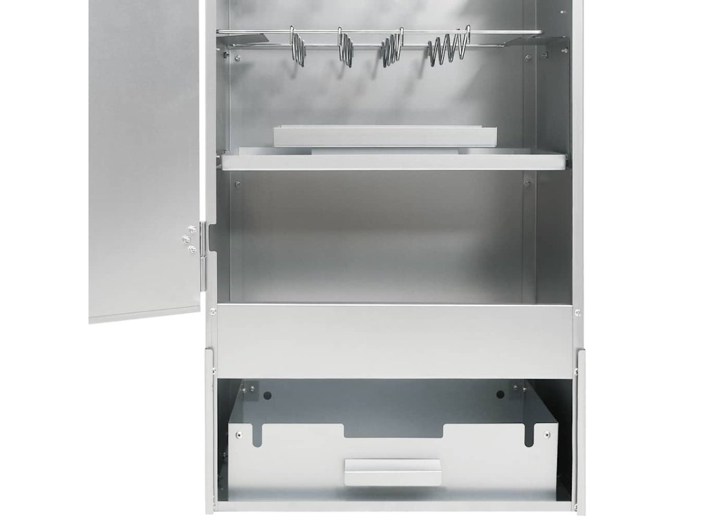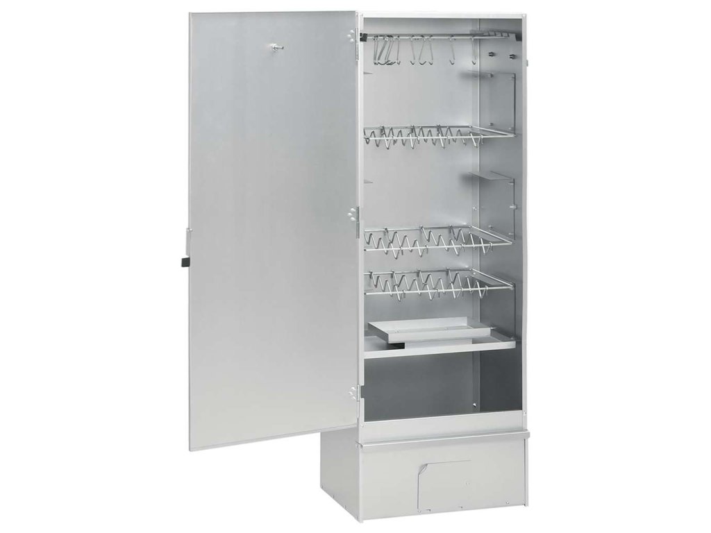 - Dostatek prostoru na uzení: Venkovní udírna poskytuje dostatek prostoru pro uzení masa, ryb, klobás apod. Pomocí přiložených háků ve tvaru písmene S a roštů bude grilování pohodlnější.