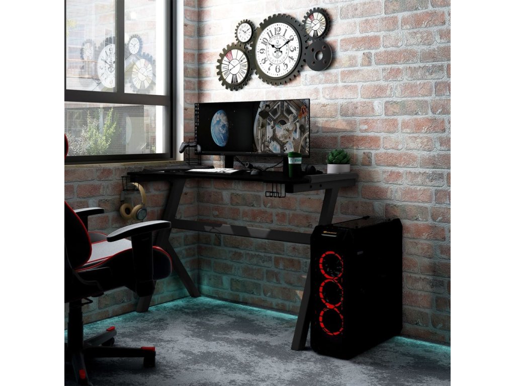 Efektivní ergonomický design nabízí perfektní herní pozici, takže váš výkon bude kvalitnější a zároveň vydržíte hrát déle! Tento počítačový stůl obsahuje držák na sluchátka a na ovladač, budete mít tedy vše pěkně po ruce. Na pravé straně desky máte k dispozici i držák na nápoje. Stůl nabízí dostatek prostoru pro vaše herní monitory, PC, klávesnice a další herní vybavení. Železné nohy ve tvaru Y zajišťují stabilitu a uspokojí požadavky každého hráče.