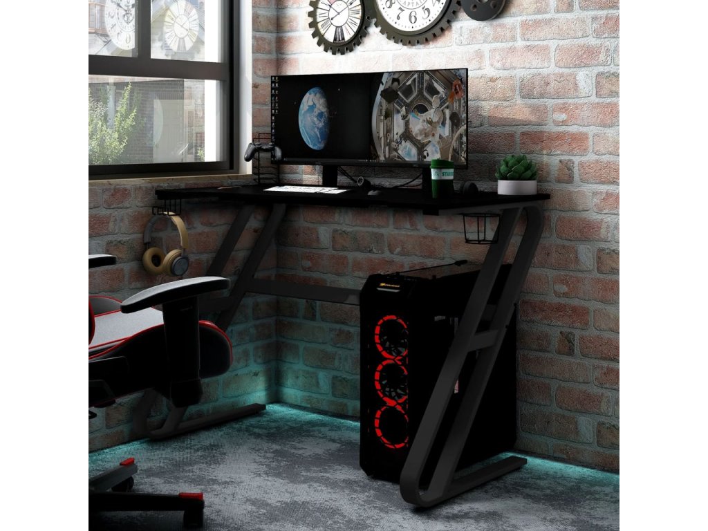 Efektivní ergonomický design nabízí perfektní herní pozici, takže váš výkon bude kvalitnější a zároveň vydržíte hrát déle! Tento počítačový stůl obsahuje držák na sluchátka a na ovladač, budete mít tedy vše pěkně po ruce. Na pravé straně desky máte k dispozici i držák na nápoje. Stůl nabízí dostatek prostoru pro vaše herní monitory, PC, klávesnice a další herní vybavení. Železné nohy ve tvaru ZZ zajišťují stabilitu a uspokojí požadavky každého hráče.