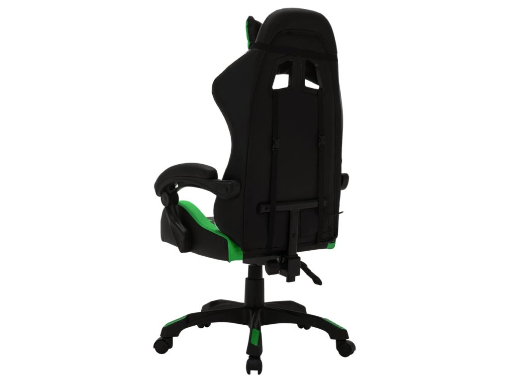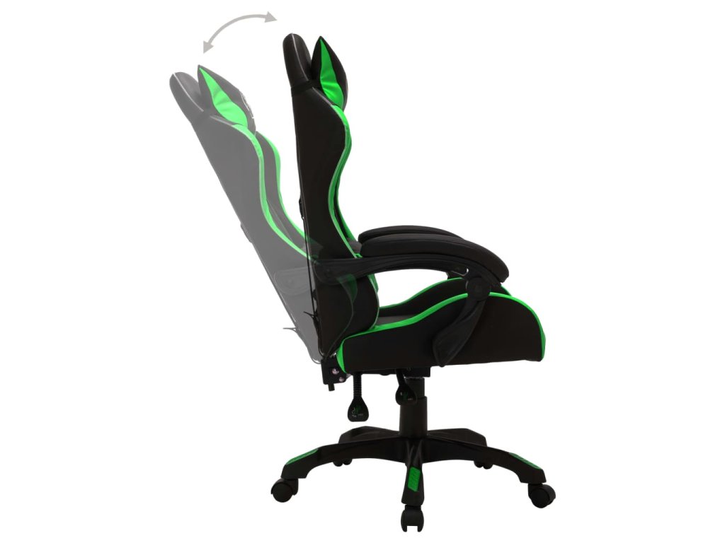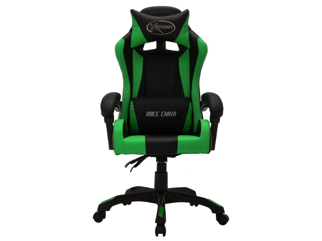Herní židle je čalouněná umělou kůží, která se snadno čistí. Součástí je také hustě polstrovaná opěrka hlavy a polštářek pod bedra, jež vám během vašeho náročného pracovního dne zajistí mimořádné pohodlí. Kancelářská židle je vybavená mechanismem s plynovým pístem, takže lze upravovat její výšku. Stejně tak si můžete nastavit i úhel sklonu, pokud vás tedy přepadne chuť si na chvíli zdřímnout, stačí sklopit opěradlo do nejnižší polohy. Židle se navíc otáčí o 360° a má 5 pojezdových koleček, což usnadňuje její pohyb. Okraj opěradel je opatřen LED světly, která vám navodí lepší herní atmosféru. Pomocí dálkového ovladače můžete snadno měnit barvu a způsob blikání světel.