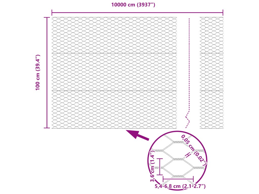 - Rozměry: 10000 x 0.05 x 100 cm (D x Š x V)