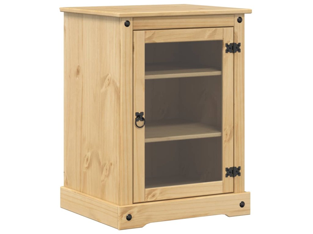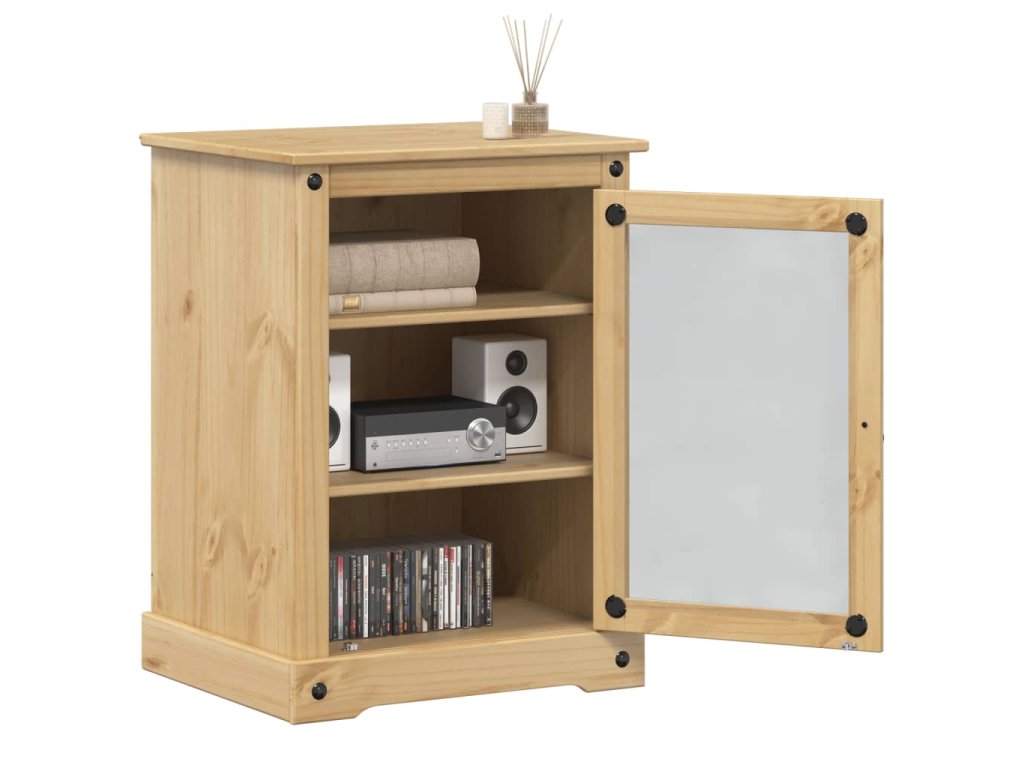 - Materiál: masivní borové dřevo s povrchovou úpravou medovým voskem, kompozitní dřevo, kov, sklo