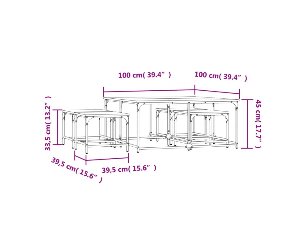 - Rozměry malého stolku: 39,5 x 39,5 x 33,5 cm (Š x H x V)
