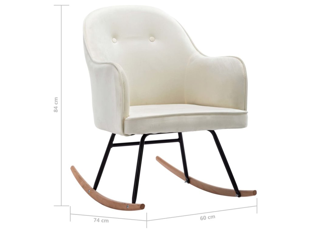 Houpací křeslo je čalouněné sametovým materiálem a je vyrobené z práškově lakovaného železného rámu, a proto je stabilní a zároveň měkké. Silně polstrovaný sedák zaručuje extra pohodlí při odpočinku v tomto houpacím křesle. Nohy z bukového dřeva navíc zajišťují vysokou stabilitu. Křeslo, designované s dlouhými houpacími nohami, se jen tak nepřeklopí.