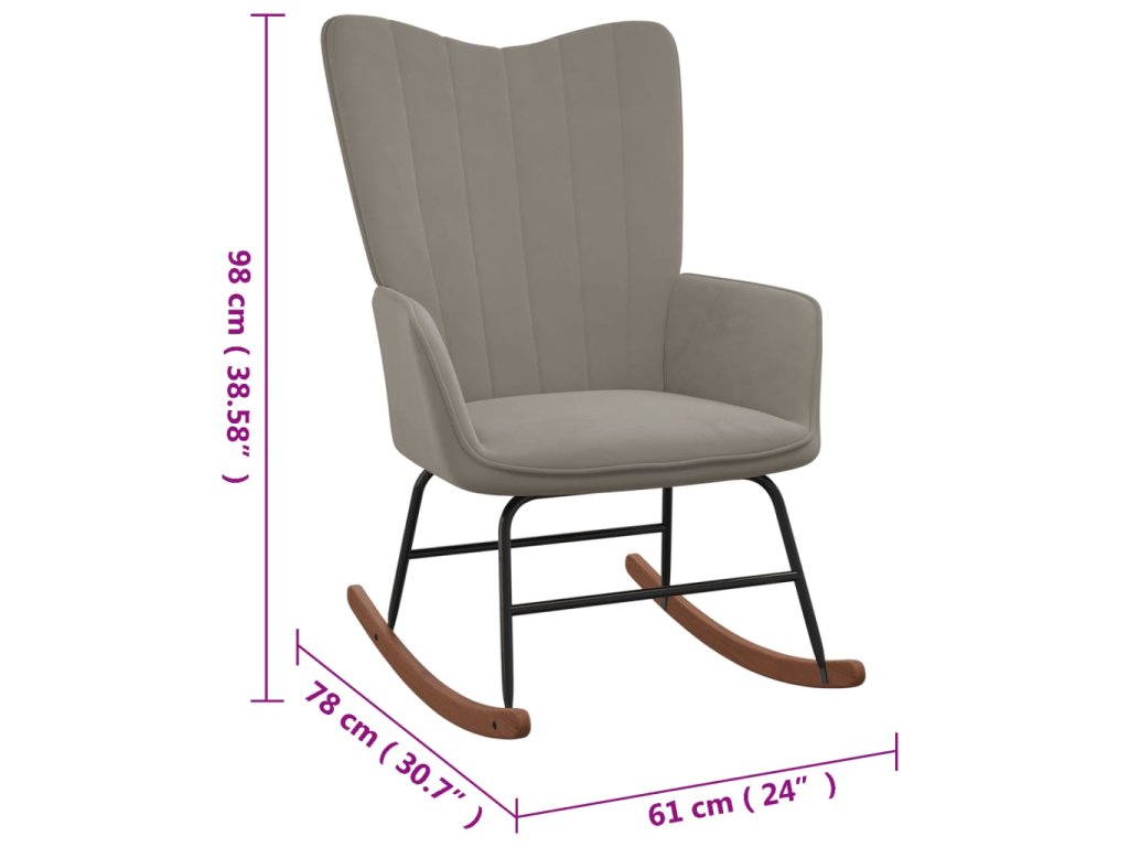 Toto křeslo s liniemi na opěradle působí svým příjemným estetickým vzhledem. Husté pěnové polstrování a čalounění na dotek měkkým sametem vám při sezení zaručí optimální pohodlí. Relaxační křeslo má dlouhé houpací kolejnice, takže se jen tak nepřevrhne. Navíc je podepřeno ocelovým rámem a nohami, spolu s dřevěnými kolejnicemi, je tedy velmi stabilní a vyniká svou dlouhou životností.