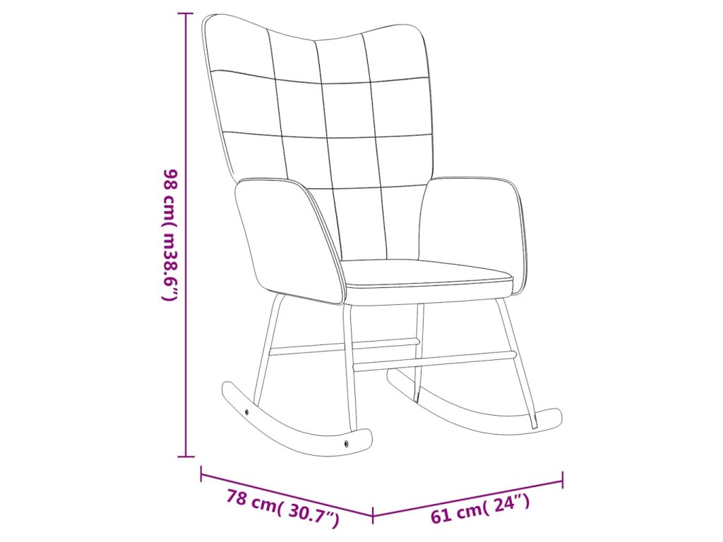 Prošívané křeslo zapůsobí svým příjemným estetickým vzhledem. Navíc je polstrované pěnovým molitanem a čalouněné na dotek měkkým sametem, takže vám při sezení zajistí optimální pohodlí. Jelikož je opěradlo vyrobeno z PVC, je toto relaxační křeslo velmi odolné. Vzhledem k dlouhým houpacím kolejnicím se relaxační křeslo jen tak nepřevrhne. Navíc je podepřeno ocelovým rámem a nohami, spolu s dřevěnými houpacími kolejnicemi, takže je velmi stabilní a vyniká svou dlouhou životností.