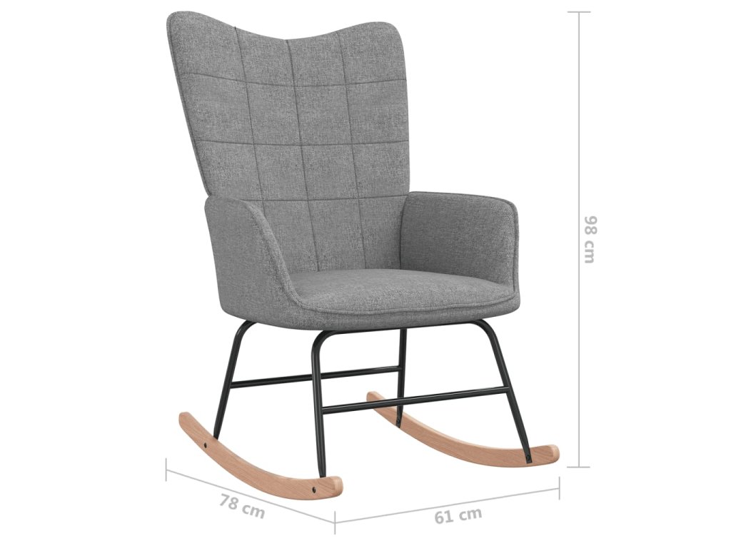 Toto prošívané relaxační křeslo zapůsobí svým příjemným estetickým vzhledem. Navíc je polstrované pěnovým molitanem a čalouněné na dotek měkkou látkou, takže vám při sezení zajistí optimální pohodlí. Vzhledem k dlouhým houpacím kolejnicím se křeslo jen tak nepřevrhne. Navíc je podepřeno ocelovým rámem a nohami, spolu s dřevěnými houpacími kolejnicemi, takže je velmi stabilní a vyniká svou dlouhou životností.