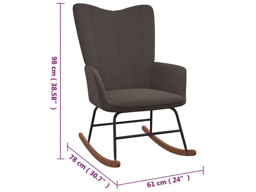 Toto křeslo s liniemi na opěradle působí svým příjemným estetickým vzhledem. Husté pěnové polstrování a čalounění na dotek měkkým sametem vám při sezení zaručí optimální pohodlí. Relaxační křeslo má dlouhé houpací kolejnice, takže se jen tak nepřevrhne. Navíc je podepřeno ocelovým rámem a nohami, spolu s dřevěnými kolejnicemi, je tedy velmi stabilní a vyniká svou dlouhou životností.