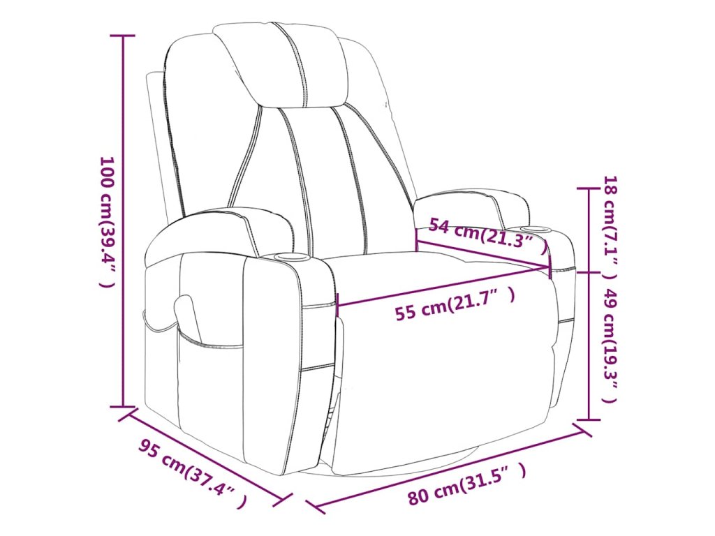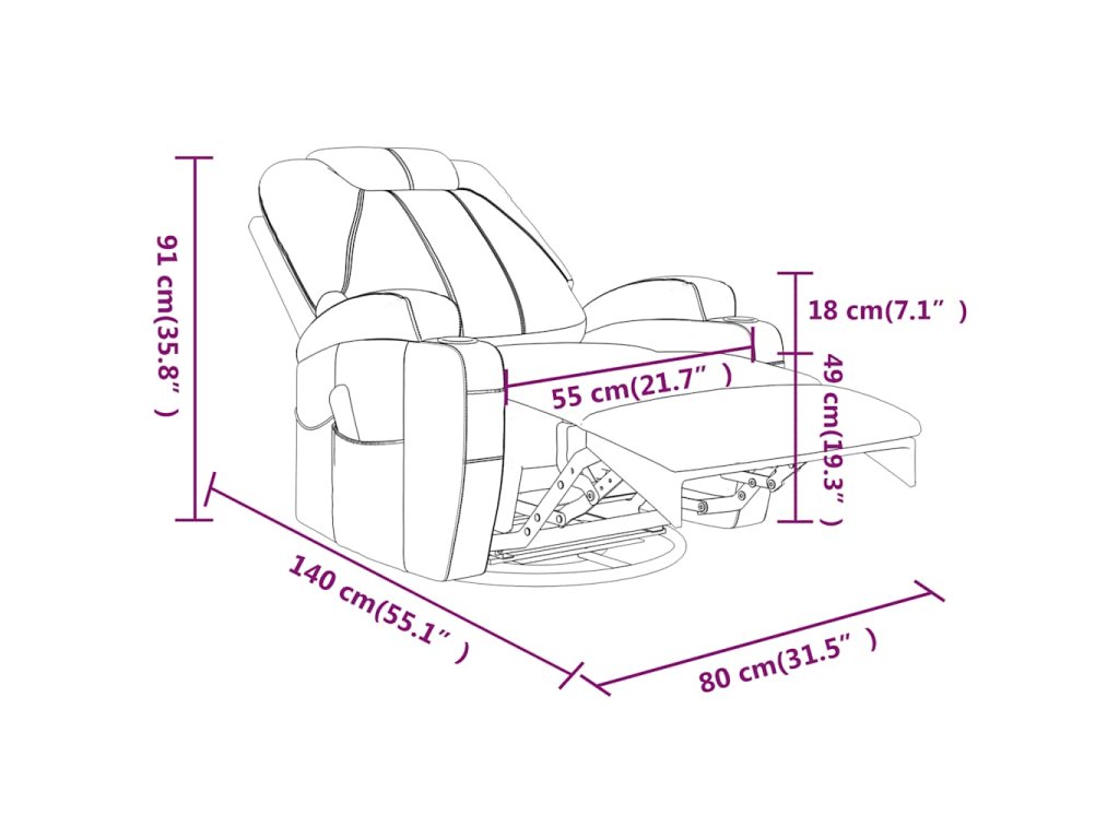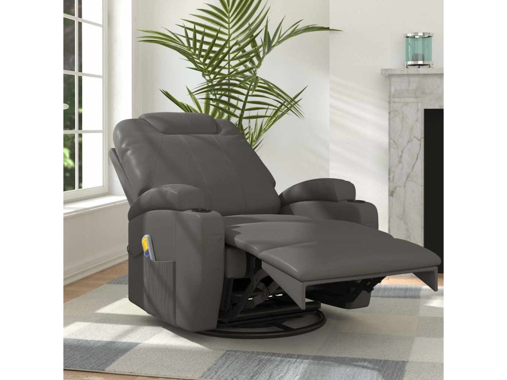 Čalouněné prémiovou umělou kůží spolu se silně polstrovaným sedadlem a opěradlem, toto otočné polohovací křeslo je navrženo tak, aby vám poskytlo maximální pohodlí. TV křeslo má otočný systém, takže máte 360° přehled o místnosti. Houpací masážní křeslo má 8 masážních uzlů, které uklidňují celé tělo. Díky funkci vytápění vydává polohovací křeslo příjemné teplo, což pomáhá zmírnit napětí. Opěradlo a opěrku nohou si můžete nastavit do různých úhlů podle vašich potřeb. Přiložené dálkové ovládání lze uložit do boční kapsy masážního křesla.