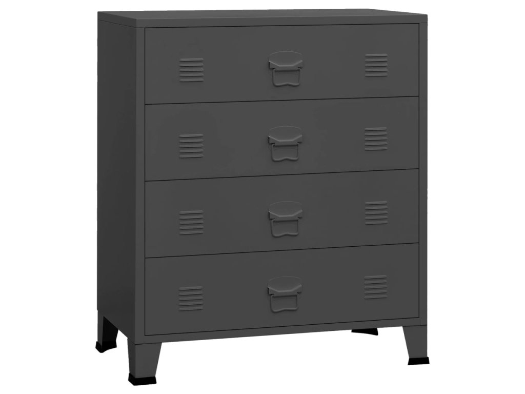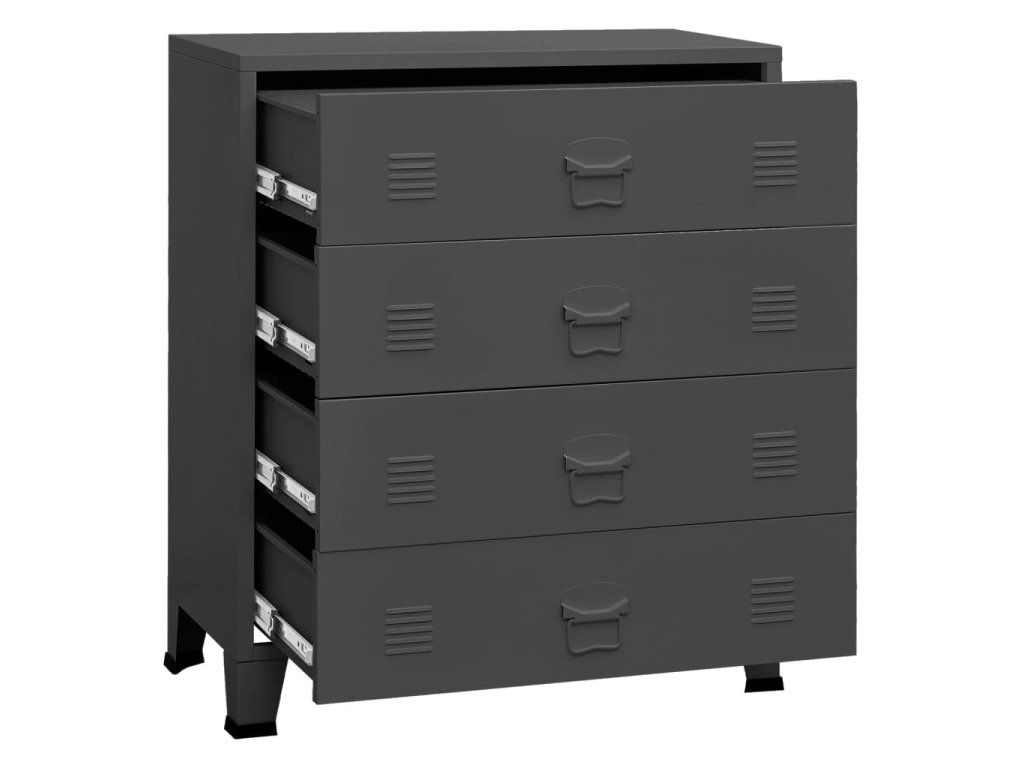 Tato úložná skříňka je vyrobena z kovu, takže je robustní a stabilní. Police poskytují dostatek úložného prostoru a vaše DVD, multimediální zařízení, knihy a jiné drobné předměty tak můžete mít přehledně uspořádané a na dosah ruky. Každá zásuvka je vybavená větracími otvory, které podtrhují její industriální vzhled. Snadno se čistí vlhkým hadříkem.