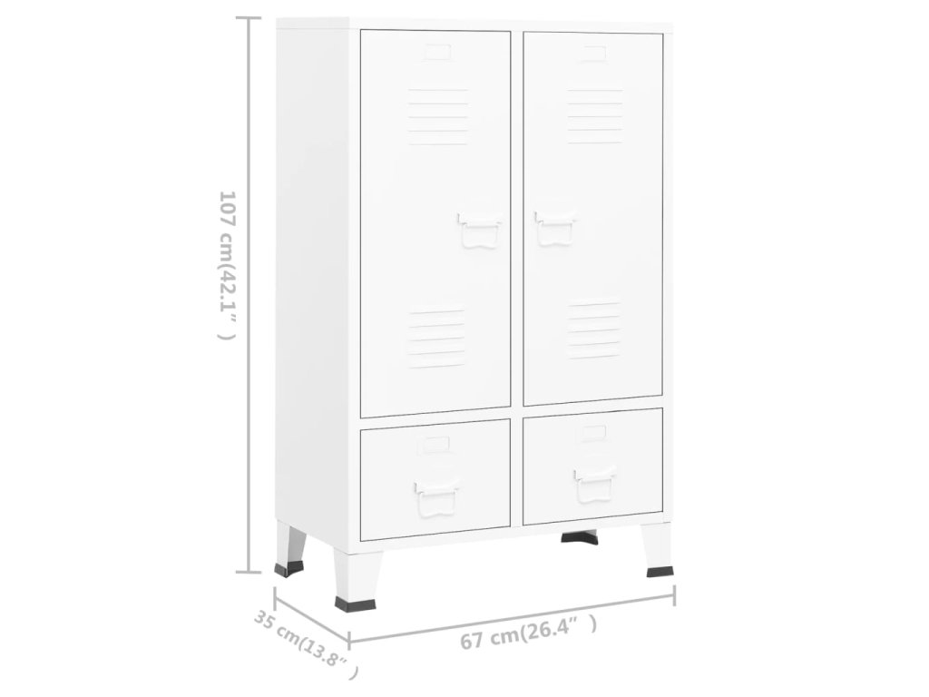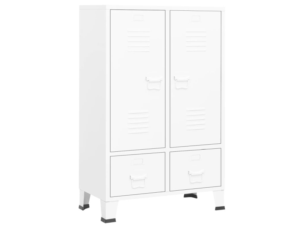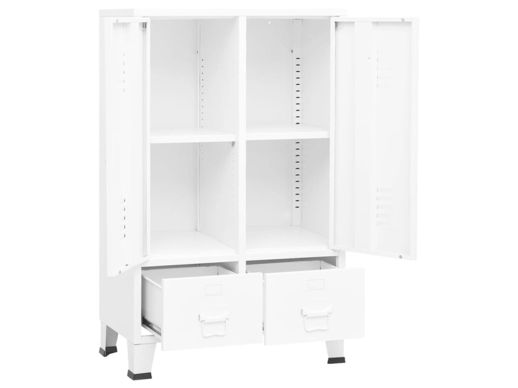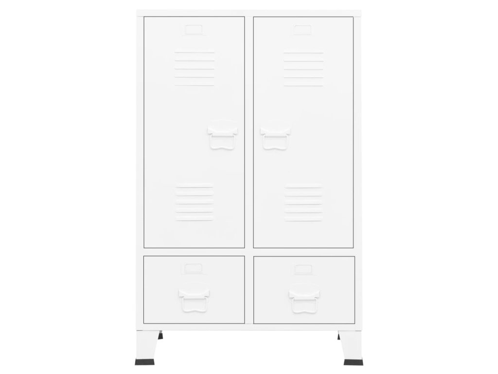 Skříň je vyrobená z oceli, takže je odolná a snadno se čistí. Uvnitř najdete 2 nastavitelné police, abyste si mohli oblečení roztřídit do různých kategorií, a 2 zásuvky pro přehledné uložení vašich ponožek, spodního prádla apod. Zásuvky se pohybují na dvoudílných pojezdech s kuličkovými ložisky, což zaručuje plynulé otevírání a zavírání, a to i s vyšší záteží (zásuvky lze zcela vysunout). Na každých dvířkách je držák na jmenovku a větrací otvory, které podtrhují celkový industriální vzhled skříně.
