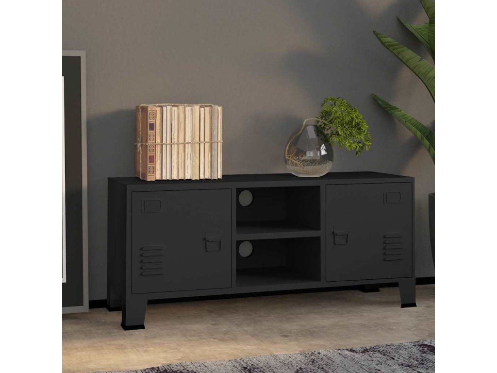 Kovová konstrukce této TV skříňky je vysoce pevná a odolná. Televizní stolek má 2 dvířka a 1 polici a nabízí dostatek úložného prostoru pro přehledné uložení a vystavení vašich knih, časopisů, DVD, váz a dalších předmětů, které chcete mít po ruce. Obě dvířka jsou vybavena držákem na štítek a větracími otvory, které vám umožní přehledně roztřídit věci a podtrhují industriální vzhled. Kromě toho jsou na zadním panelu 2 otvory pro uspořádání kabelů elektronických zařízení. Skříňka se snadno čistí vlhkým hadříkem.
