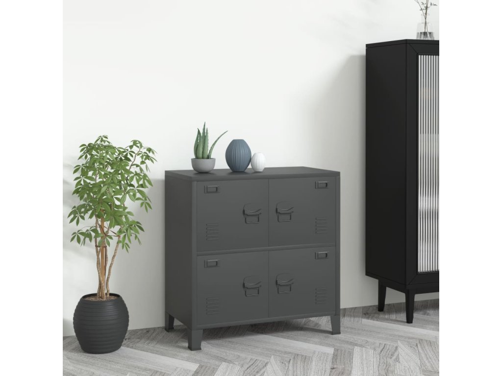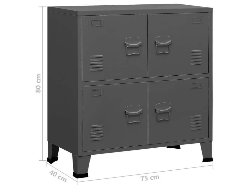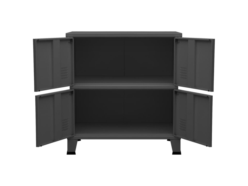 V úložné skříni s policí a štítky na dvířkách si snadno a přehledně uspořádáte nejrůznější položky dle různých kategorií. Ikonický design skříně s industriálním šarmem se hodí do každé kanceláře či pracovny. Ocelové nožičky s plastovými krytkami zabraňují poškrábání podlahy. Tato skříň je vyrobena z oceli, proto má dlouhou životnost a snadno se čistí. Všechny dvířka jsou také vybavena jmenovkami, takže si věci můžete přehledně uspořádat, a větracími otvory, které ji dodávají industriální vzhled.