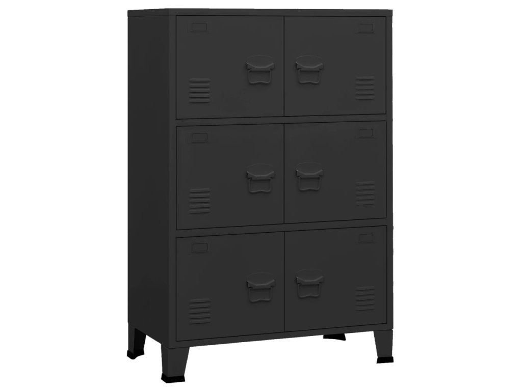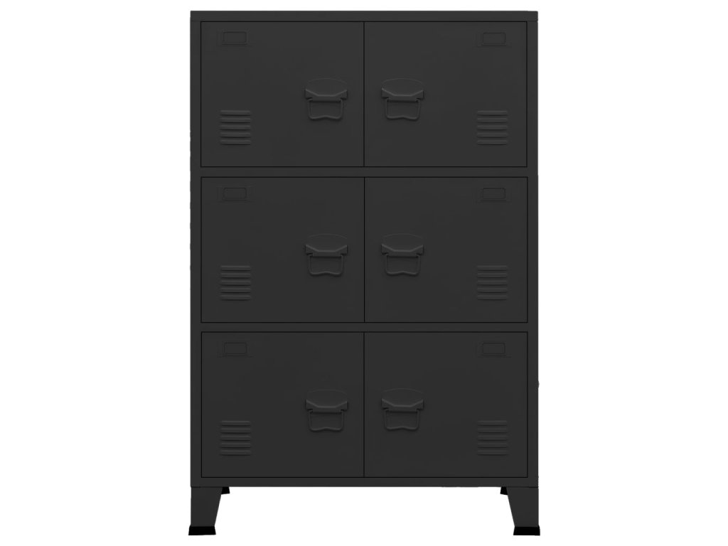Tato skříň je vyrobena z kovu, takže je robustní a stabilní. Úložná skříň má 6 dvířek a poskytuje dostatek úložného prostoru, abyste měli své položky uspořádané a neustále po ruce. Všechny dvířka jsou také vybavena jmenovkami, takže si položky můžete přehledně uspořádat dle různých kategorií, a větracími otvory, které jí dodávají industriální vzhled. Navíc se snadno čistí vlhkým hadříkem.