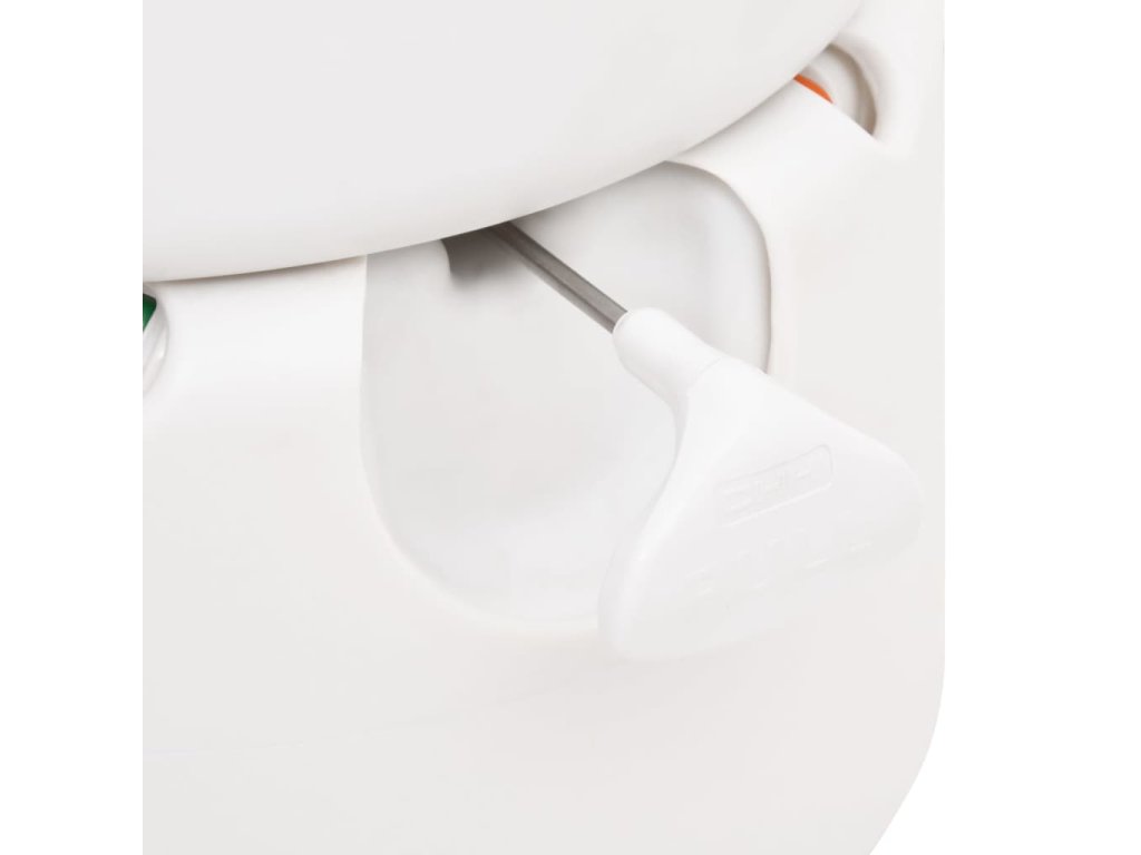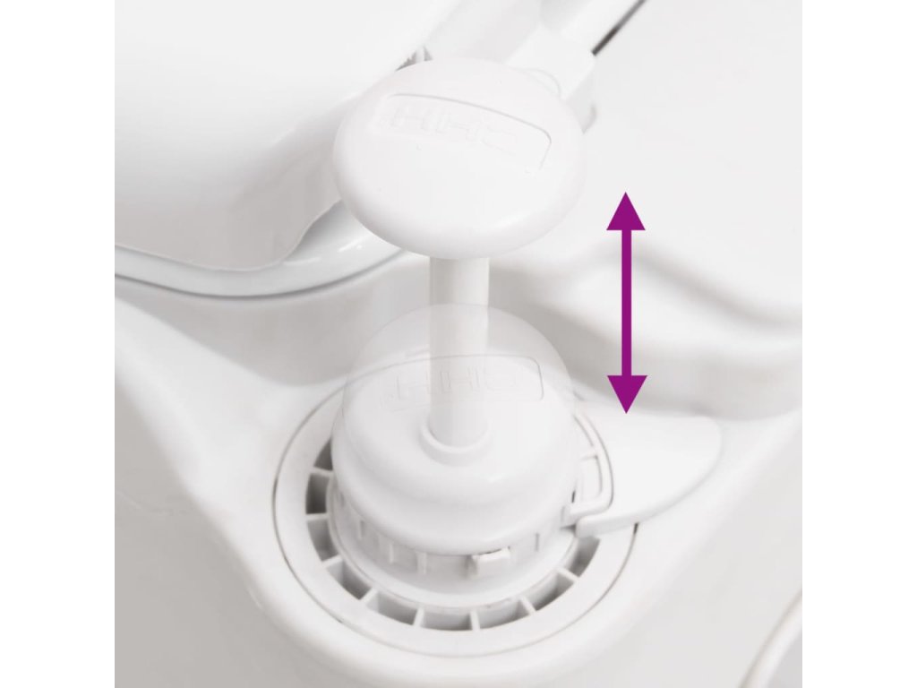 - Účinné čištění: Přenosná toaleta je vybavena pístovým čerpadlem, které ve srovnání s měchovým čerpadlem proplachuje mísu mnohem lépe. Její proplachování typu T usnadňuje odstraňování odpadu.