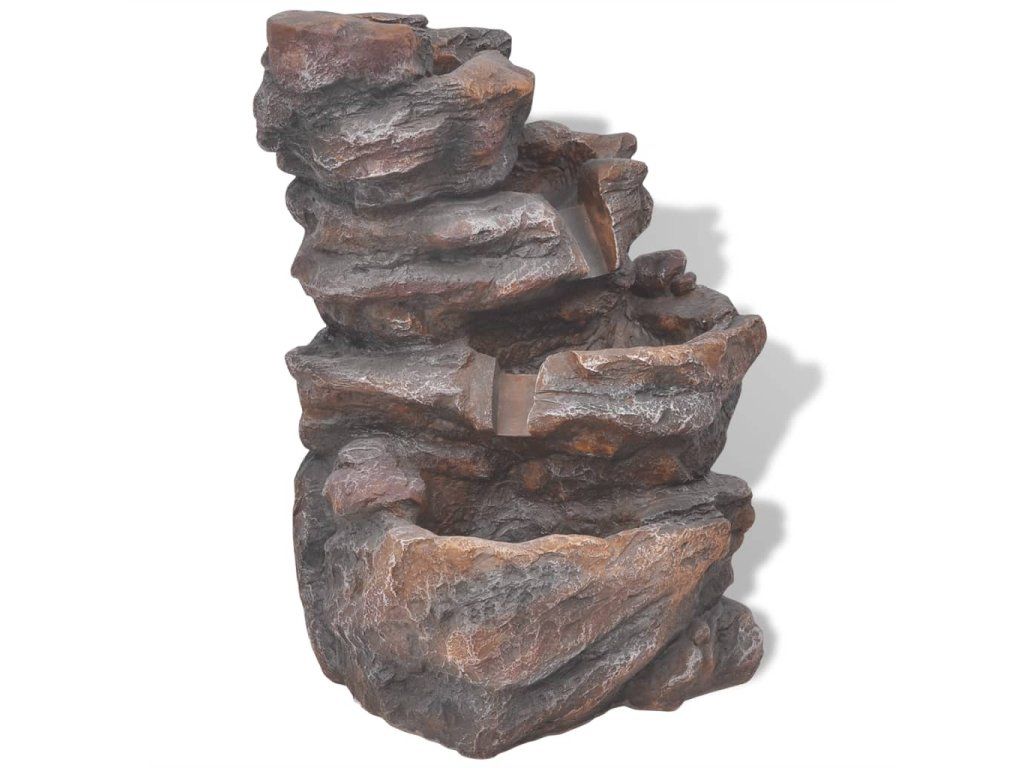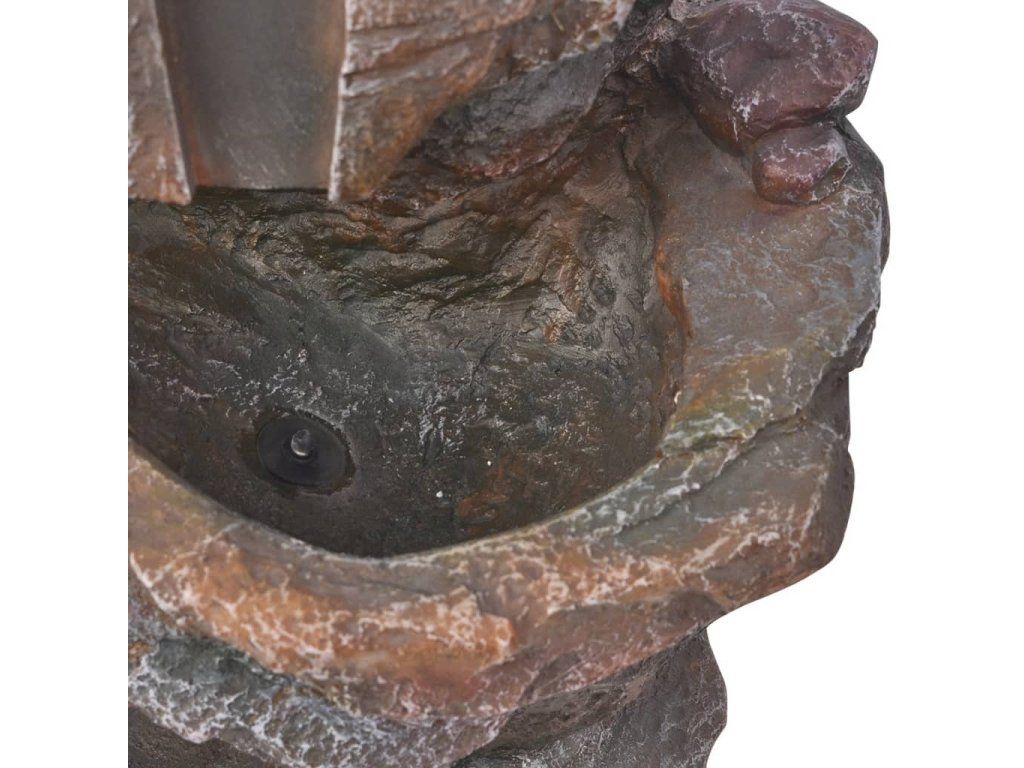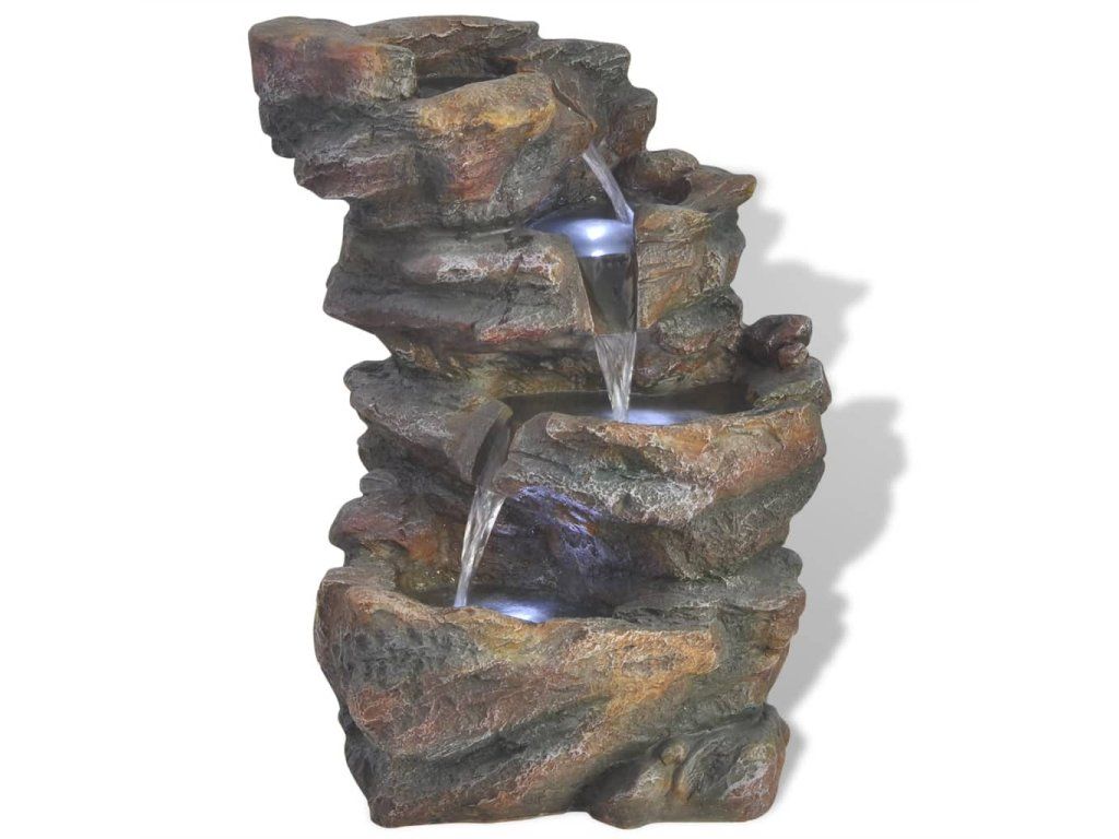 Tento prvek s tekoucí vodou se bude hodit do každého stylu zařízení. Má čtyřúrovňovou vodní kaskádu a je osvětlen LED diodami, což vytváří úchvatný vizuální efekt, obzvláště v noci. Tato fontána je vyrobena z polyresinu (syntetická pryskyřice) a je odolná vůči UV záření, což znamená, že bude vypadat stále dobře a uchovávat si svou barvu, i když ji umístíte na přímé sluneční světlo. Několik pramínků a uklidňující zvuk tekoucí vody navozuje relaxační a meditativní atmosféru. Přiložené vysoce kvalitní čerpadlo zajišťuje bezpečné a spolehlivé používání.
