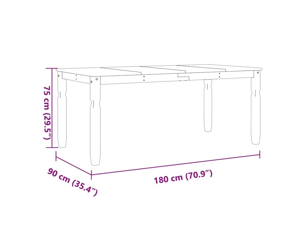 - Rozměry stolu: 180 x 90 x 75 cm (D x Š x V)