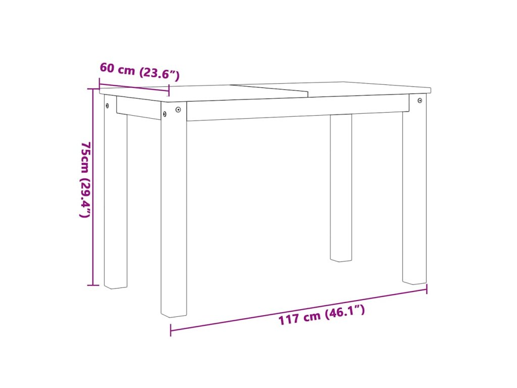 - Rozměry stolu: 117 x 60 x 75 cm (d x š x v)