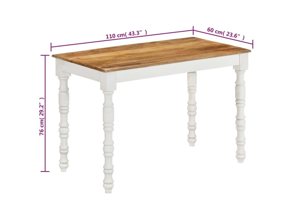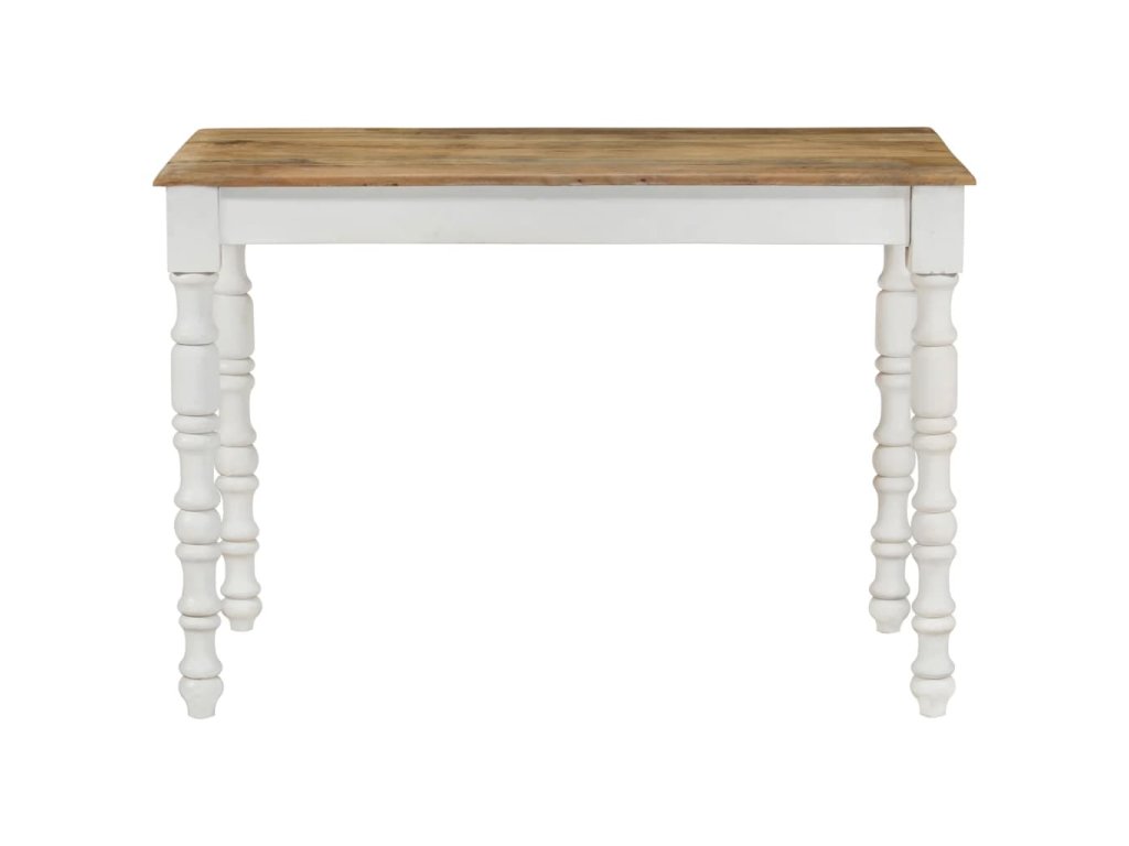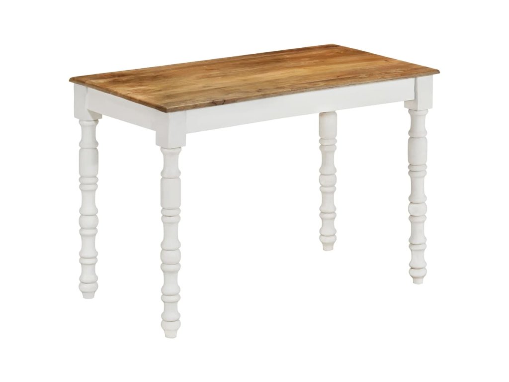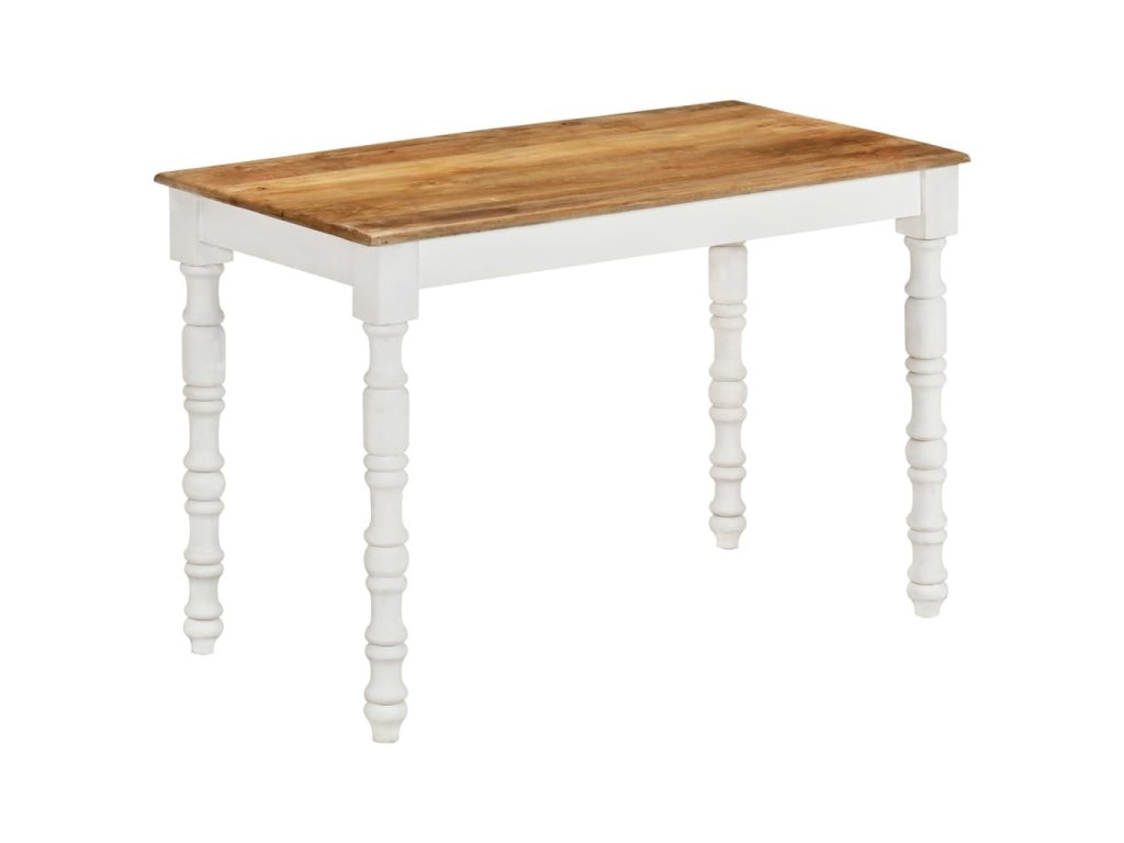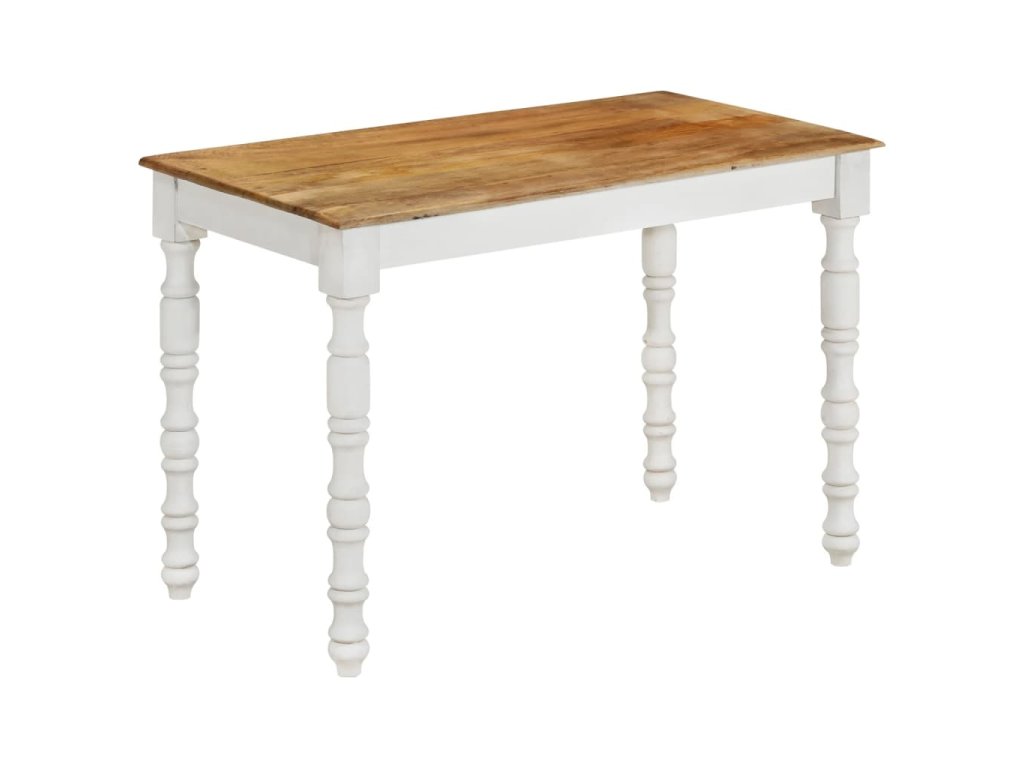 - Prvotřídní materiál: Jídelní stůl je vyrobený z masivního mangovníkového dřeva, které je robustní, odolné a krásné, a řemeslné zpracování přispívá k jeho velkolepému retro stylu. Vzhledem k řemeslnému zpracování a krásné kresbě dřeva je každý kus nábytku jedinečný a lehce se liší od ostatních.