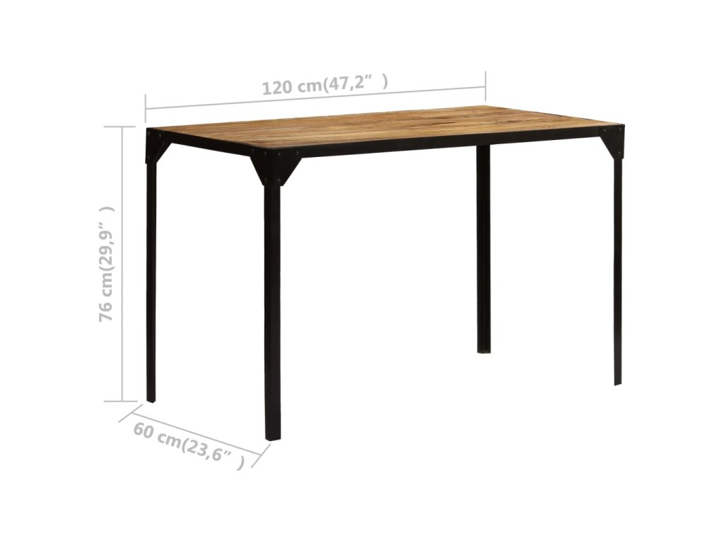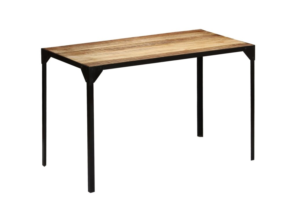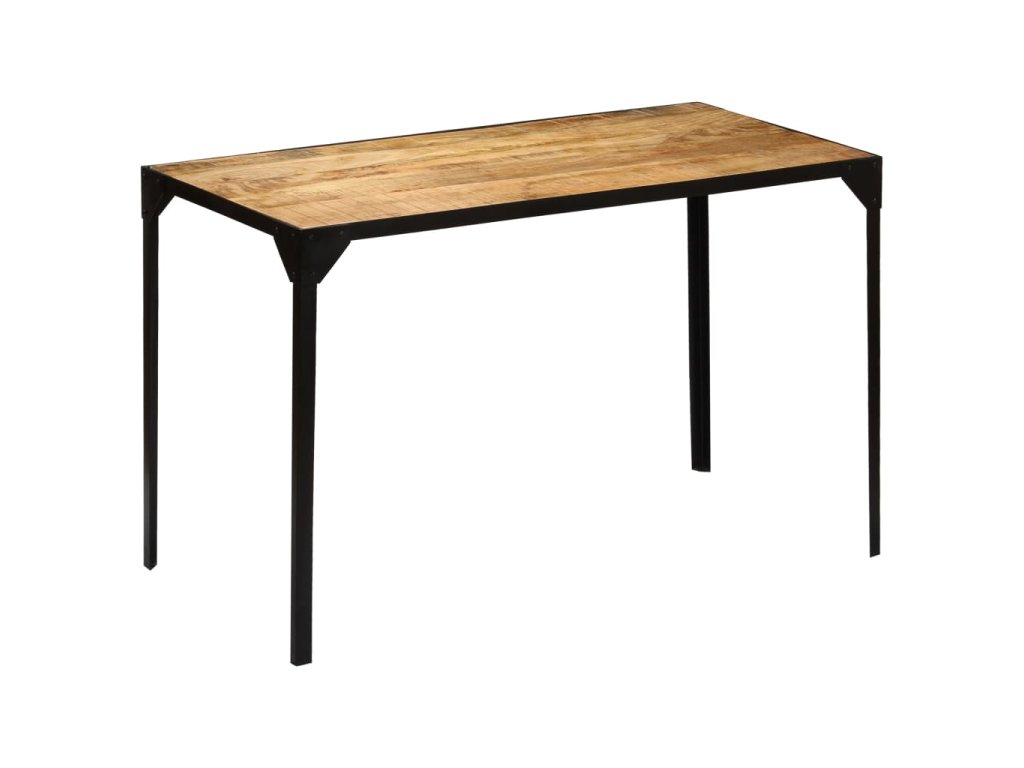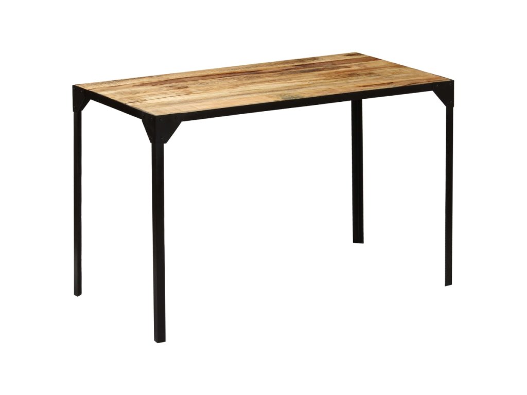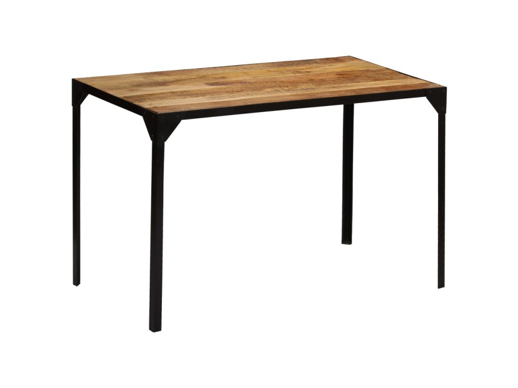 Jídelní stůl v retro stylu je ručně vyroben z hrubého mangovníkového masivního dřeva, které se vyznačuje nejen svou stabilitou a odolností, ale také krásným vzhledem. Každá fáze výrobního procesu je prováděna s mimořádnou péčí, ať už se jedná o leštění, natírání anebo lakování. Řemeslné zpracování a nádherná kresba dřeva činí každý kus nábytku jedinečným a lehce odlišným od ostatních. Pevný rám z oceli s práškovým nástřikem stolu dodává na odolnosti a trvanlivosti. Výrobek se snadno sestavuje.