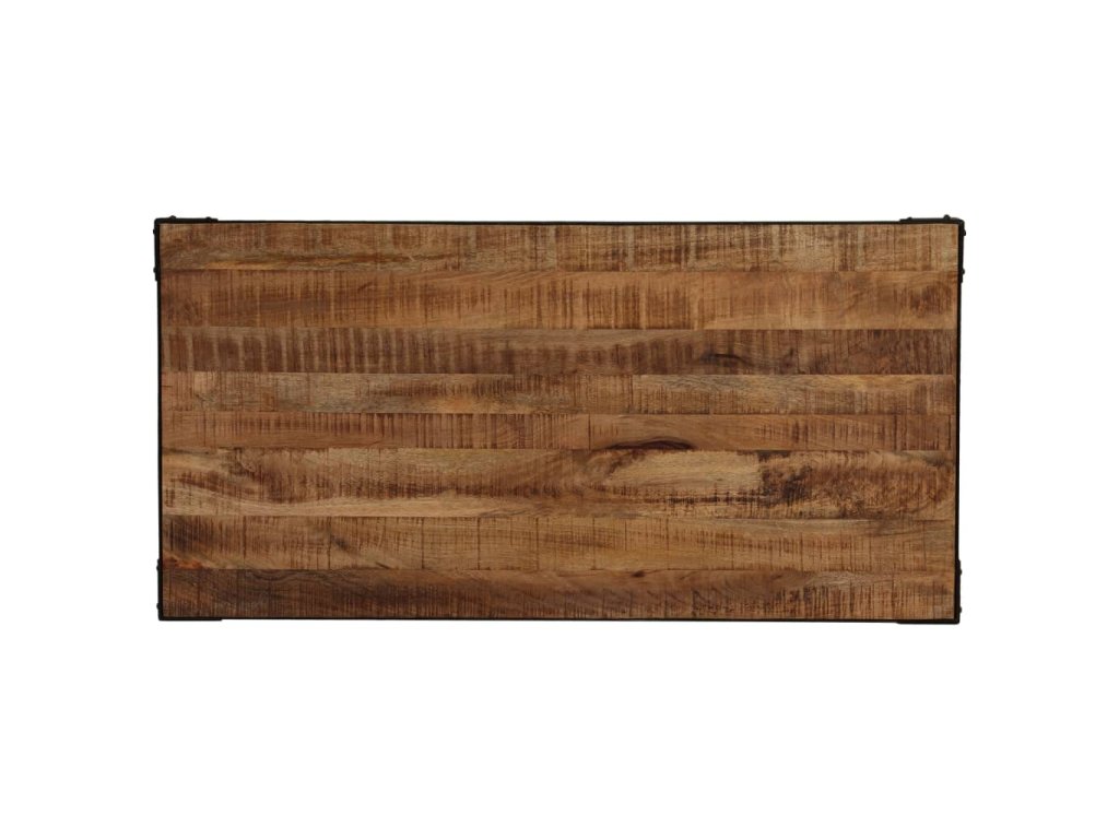 - Materiál: masivní hrubé mangovníkové dřevo + ocelový rám s práškovým nástřikem