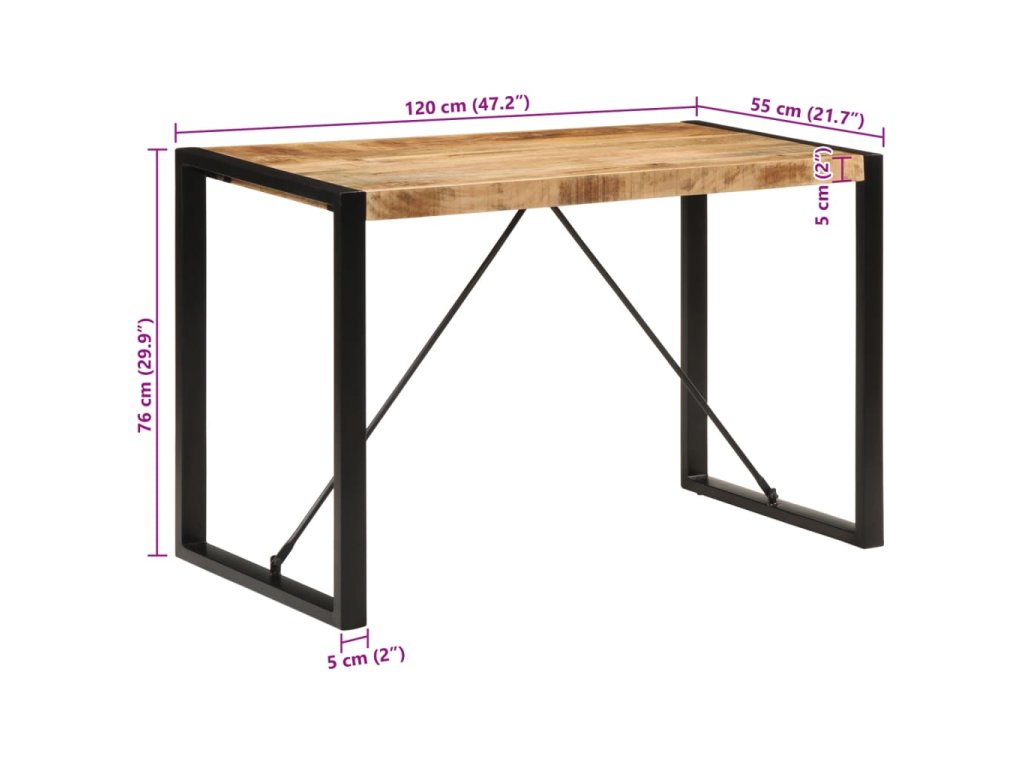 - Materiál: masivní hrubé mangovníkové dřevo s přírodní povrchovou úpravou, ocel