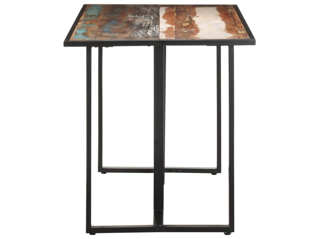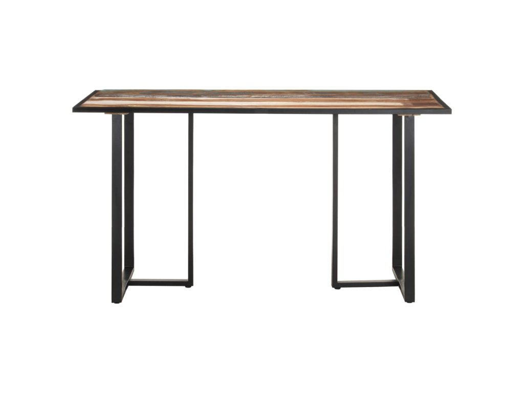 Jídelní stůl je vyrobený z masivního recyklovaného dřeva, které pochází z trámů, podlah a podpěrných nosníků ze starých budov určených k demolici. Může tedy sestávat z celé řady různých druhů dřeva, jako jsou borovice, teak, mangovník, akácie atd. Recyklované dřevo nabývá vlastností všech těchto rozličných typů dřevin. Navíc je již zestárlé, zvětralé a vyschlé, takže se nesmršťuje ani neohýbá. Práškově lakované želené nohy navíc dodávají stolu stabilitu a pevnost.