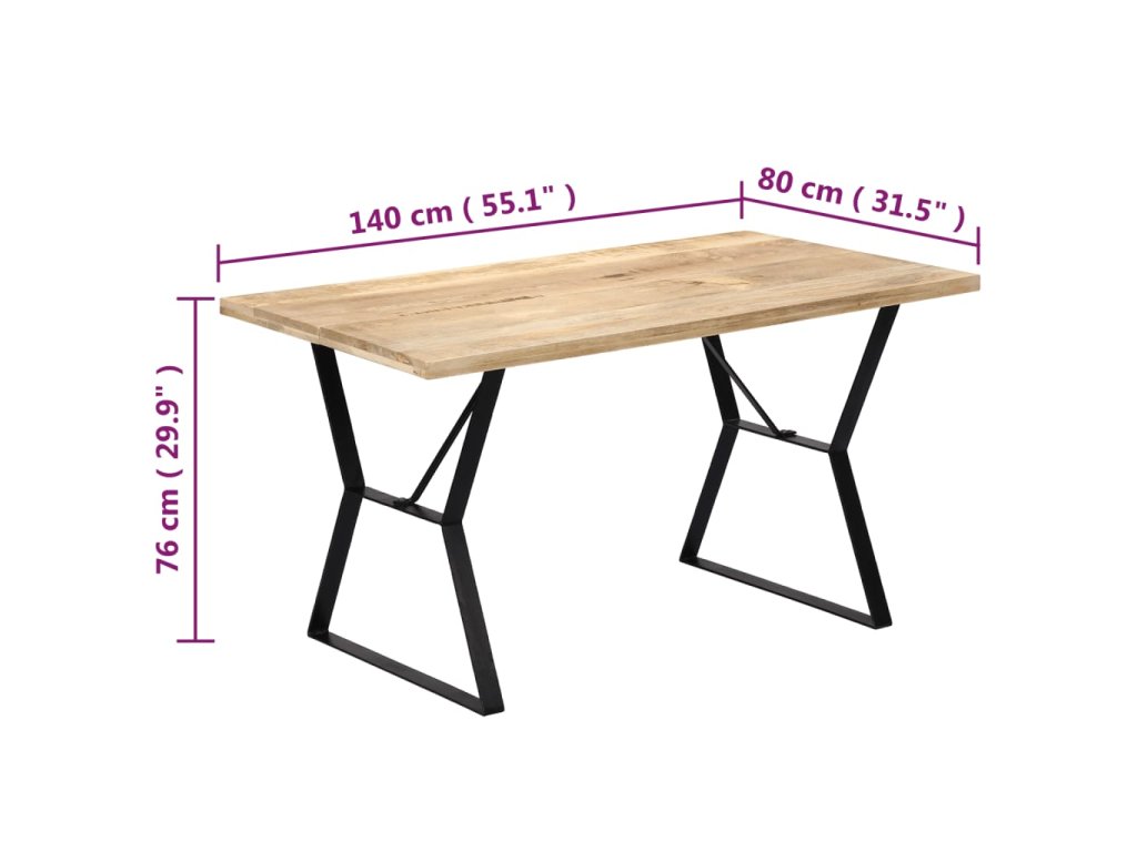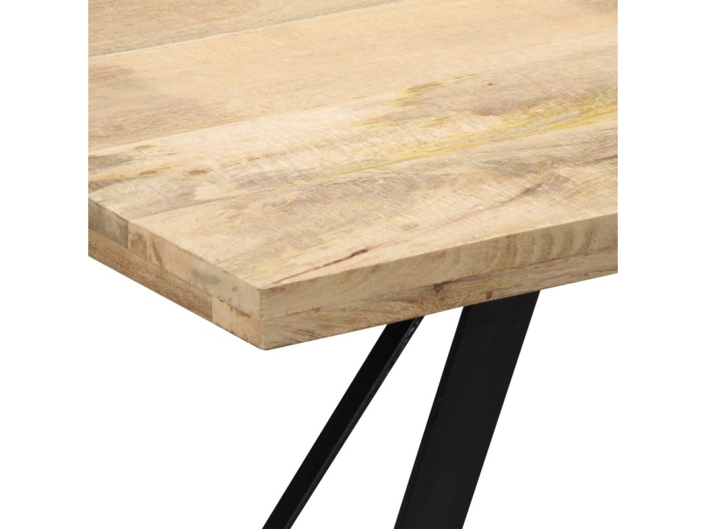 Jídelní stůl je vyroben z masivního mangovníku, což je tvrdé dřevo s hustou texturou. Hrubé mangovníkové dřevo je nejen schopné unést značnou váhu, ale výborně také odolává opotřebení a působení času. Stůl s překrásným designem je proto velice stabilní, odolný a příjemný na pohled. Každá fáze výrobního procesu je prováděna s mimořádnou péčí, ať už se jedná o leštění anebo lakování. Silné nohy ze železa s práškovým nástřikem dodávají stolu na odolnosti. Sestavení jídelního stolu je snadné.